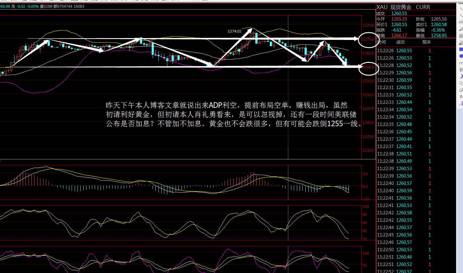 肖禮勇:非農之際.黃金進入區間震蕩.尋找出口 昨晚黃金成功獲利出局,不管是多單套單還是空單套單看的本人肖禮勇文章 基本上都成功獲利出局。 今晚市場將要迎來美聯儲六月利率決議前最關鍵也是最重要的一個數據,自從上周黃金價格突然站上1260美元之后,該點位瞬間轉變成黃金的強力支撐,使得進入本周以來,黃金價格雖然沒能繼續向上突破,但也無法出現明顯下跌,1260關口發揮強力的支撐作用使得行情一直在1260-1270美元之間震蕩。隔夜ADP數據以及初請數據公布之后,出現了一個利多一個利空的結果,導致黃金有暫時“躲過一劫”,然而ADP數據的利空在一定程度上預示著非農數據也將利空黃金,那么今晚金價是否會正式開啟暴跌行情呢? 操作建議: 1258做多,止損3個點,目標看1265 1270-1275做空,止損3個點,目標看1265 簡單點:1260-1270區間高拋低吸。 肖禮勇寄語: 國家理財規劃師。交易心得:根據交易定律法則,盡量規避不確定性帶來的無謂止損,耐心的等待風險小利潤大的機會,這里不缺少機會,缺的只是等待機會并贏得機會。市場永遠是對的,沒有比市場更精明 |