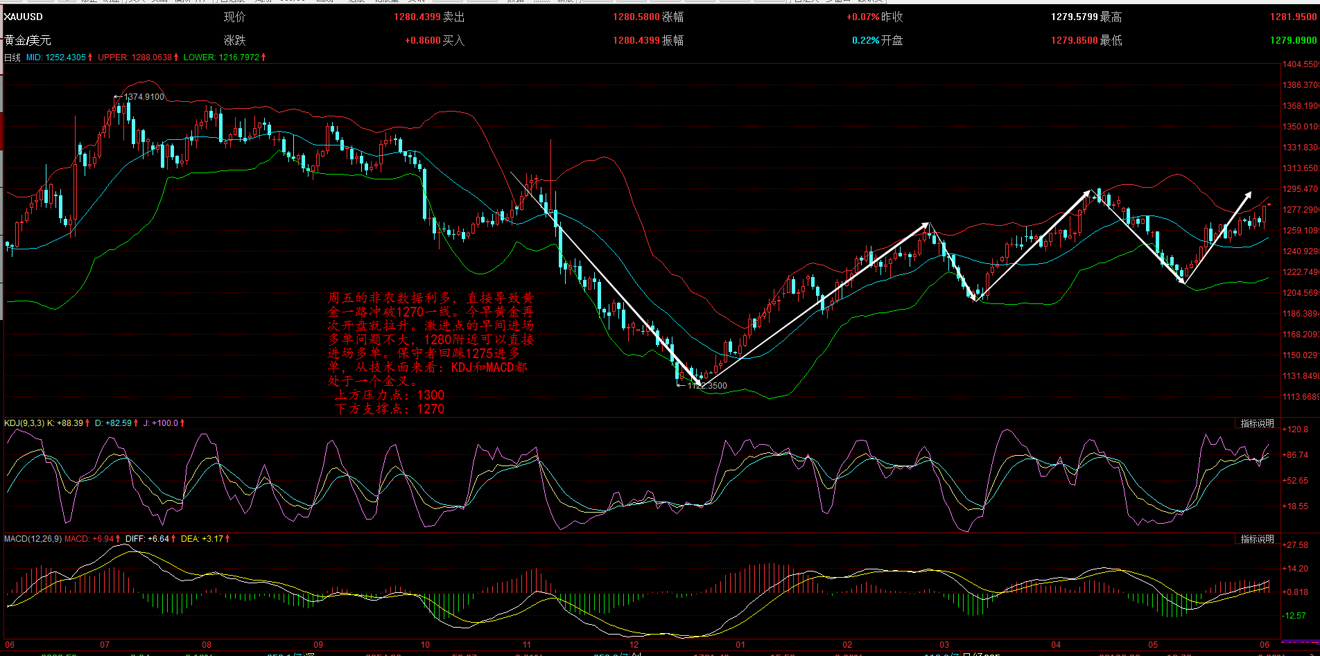 肖禮勇:非農黃金拉升.1300指日可待 倫敦恐怖,黃金避險 在非農爆冷之后,黃金市場掀起一片狂歡之聲,然而隨著市場結束最后的行情,倫敦再次發生恐怖襲擊,當地時間3日晚,一輛汽車在英國倫敦泰晤士河上的倫敦橋附近沖撞行人,已致至少1人死亡,20人受傷。英國警方正在搜捕三名可能攜帶武器的嫌疑人,并將這一事件定性為“恐怖襲擊”。 倫敦警方稱,繼倫敦橋汽車撞人事件之后,倫敦橋附近的博羅市場以及沃克斯豪爾地區也相繼報告了傷人事件。 我們知道不久前英國曼城剛剛就發生了連續的恐怖襲擊事件,讓英國大選受到了一定程度的影響,然而這一次是首都倫敦發生恐襲,雖然事情嚴重程度不及曼城爆炸襲擊,但眼看英國大選將至,如此頻發的恐怖襲擊事件可能會進一步激化民眾的恐慌情緒以及對國家安全的擔憂。 總的來說,眼下黃金價格受到非農爆冷的影響直逼1280美元,然而上周末發生的倫敦恐襲恐怕會讓黃金價格在本周開盤后再次迎來上漲行情,加上非農數據的后續影響,本周一開盤黃金價格可能會直接沖破1280美元直指1300大關,最關鍵的是,本周將迎來英國大選以及FBI前局長科米出庭作證,這兩起事件如果也利好黃金,那么即使美聯儲利率決議將至,金價可能也會在短期內突破1300大關。 隨著非農的爆冷,黃金的走勢似乎整個扭轉了過來,在短時間里大量的利好涌現出來讓美聯儲加息的光芒黯淡了下去。不過段晨恩在這里要提醒一點,無論是倫敦的恐襲,還是英國大選或者是特朗普的通俄門新進展,可能會在短時間內給黃金帶來較強的上漲動力,但其時間性依然是最大的不確定因素,因此在金價上漲的過程中要時刻注意市場情緒的轉變,尤其是金價逼近1300美元的時候。 6.5日內操作建議: 回踩1275做多,止損3個點,目標看1290 第一次達到1300可以布局空單。 肖禮勇寄語: 國家理財規劃師。交易心得:根據交易定律法則,盡量規避不確定性帶來的無謂止損,耐心的等待風險小利潤大的機會,這里不缺少機會,缺的只是等待機會并贏得機會。市場永遠是對的,沒有比市場更精明 |