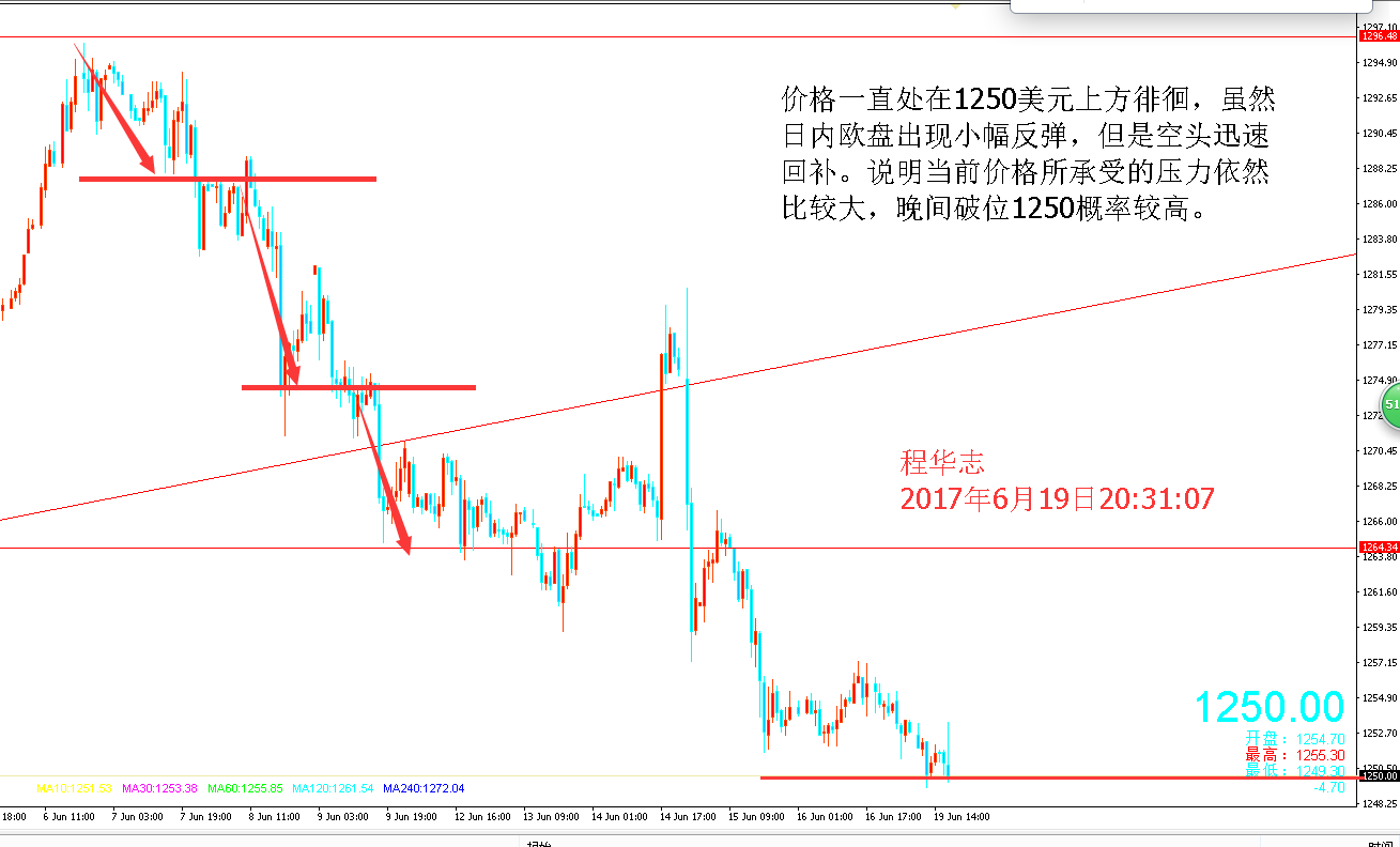市場消息面解讀: 英國與歐盟方面的“脫歐”談判于今日北京時間下午5時正式啟動。談判將啟之際,英國媒體援引消息人士的話報道,首相特雷莎·梅目前面臨保守黨內“脫歐派”和“留歐派”的雙重夾擊,兩派均表示有意發動“政變”,將特雷莎·梅趕下臺。 隨著“脫歐”談判的開啟,英國國內要求特雷莎·梅政府軟化立場的呼聲不斷高漲。英國《星期日郵報》一項最新民調結果顯示,超過半數受訪者對特雷莎·梅的“硬脫歐”策略表示反對,高達65%的人認為英國應與歐盟先達成某些協議后再“脫歐”。 這場橫跨英吉利海峽的角力將是一場傷人的“內耗”。英國方面,“脫歐”已經引發兩場“政治豪賭”:去年的公投讓卡梅倫黯然下臺;今年的提前大選讓特雷莎·梅遭遇重創。而且,“硬脫歐”與“軟脫歐”之爭在英國并未平息,隨時會引發新的政治風浪。 站在市場的客觀角度來看,市場預期特蕾莎在脫歐問題上態度會更加軟化,這也是英國國內大部分人的意志,特蕾莎現在不得不向“軟脫歐”低頭。晚間的談判和北京時間凌晨24點的新聞發布會上,英國與歐盟能否在一些關鍵問題上達成一致,否則避險情緒有再次升溫的可能。 國際黃金走勢解析: 對于黃金走勢而言,本次脫歐談判會對其造成影響呢?首先可以坑定的一點將會是市場被激發的避險情況,脫歐談判的不確定性是有可能提振當前市場所缺乏的避險需求的,不過鑒于本次談判會是一場耗時較長的“拉鋸戰”,想黃金價格在短期內得到迅速回升可能性較低,再加上黃金市場近期還是受到美聯儲硬派加息以及后續耶倫表現的強硬離場所影響而走跌,所以我們還是繼續按照當前技術面所表現出來的短線空頭趨勢來操作,不建議盲目去抄底。 對于晚間短線后續的操作來說,1250美元被破為大概率事件。從技術形態來看,當前盤面主力依然是空頭在操控,大跌之后的橫盤整理沒有出現較強的反彈欲望,關鍵性的拐點阻力無法在短期內突破,所以反轉信號還需要繼續等待。短線上維持震蕩下滑破新低的格局未變,但是這個下滑動能不會再像之前那么大,所以追空是有很大風險的,建議還是等短線反彈再行布局空單。操作繼續關注午間分析所給的1254-1255美元阻力位,支撐破1250美元下方的1245美元一線。 短線重點關注點位: 地緣政治激發的避險情緒較為緩慢,短線操作還是以當前技術形態所給的信號來布局,晚間首次反彈1245-1255美元空單進場,損1258美元上,目標先看1250美元,破位繼續跟進看1245美元。根據實際短線情況做反手多單。 你是否聽了很多大道理,可依然做不好交易。學習了很多理論知識,可仍然不能游刃有余。如果我們不貪婪,我們不會被打敗,如果我們不恐懼,我們將獲得勝利,有時候想證明給一萬個人看,但發現最后能懂的只有自己。市場的生存法則就是弱肉強食,注定有一批人將被市場所淘汰。佛度有緣人,我帶有心人。 以上分析不做具體進場點位,僅供參考。投資有風險,入市需謹慎。對行情有疑問或者操作不理想的朋友可與筆者本人溝通。 文/程華志 |