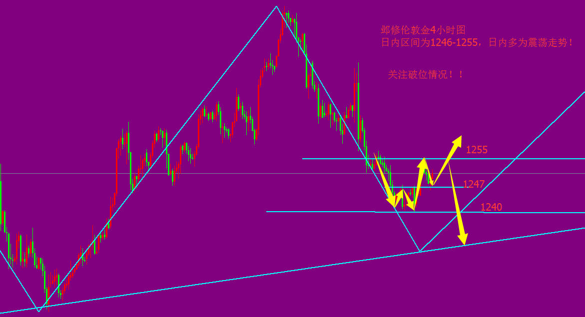 鄴修寄語: 投資是一條學習積累的漫長之路,任重而道遠!虧損,焦慮,徹夜難眠都是常態。尋求名師卻成為了比交易更重要的事,確實找到了一位優秀的良師,能得到的不只是收益上的回報,還有技術,理念,習慣的養成!戰勝自己的貪念,戰勝自己的僥幸,戰勝自己的陋習,我將帶你走上真正的投資之路! 鄴修解盤: 目前的黃金來到了一個比較尷尬的位置,在歷經了將近兩周時間的持續下跌后,近兩個交易日出現了較為明顯的上漲。那么,黃金現在是否已經到了一個可以嘗試抄底的時間呢?且聽鄴修慢慢分析: 1、金價從6月上旬再次逼近1300關口,到本周初一度下探1240一線,金價在短短兩周的時間內整整跌去了60美元。不過,盡管近期價格再度呈現弱勢局面,但有一個現象值得重視:從中長期來看,金價今年以來依然頑強地維持在上升趨勢之中,也就是說金價高低點仍在不斷上移; 2、可以從美債來看,美國國債利差變化與黃金價格走勢長期呈負相關關系,隨著利差的走低,黃金將上漲; 3、目前黃金/美元比正在測試一個十分重要的點位,如果該比率能夠在此重要點位站穩支撐,那金價將迎來六年未見的看漲信號。 黃金在經過兩日的盤整之后,今天開盤便快速拉升,直接突破1248小周期阻力,近期的下跌循環被打破,今日我們需要重點你關注的阻力位置在1257一線,此處是本周初黃金受阻回落的起跌點,也是6月美聯儲加息后黃金自1281下跌至1241回調38.2%阻力位置,只要黃金能夠上破此處,則可以確認短期見底,后市有望上沖1265一線。早盤金價快速走高,多頭力量突破1258分水嶺,突破后跌勢暫時結束,黃金進入到短線震蕩反彈格局中。今日操作上還是建議以回落逢低做多為主,反彈高空輔助。綜合來看:上方關注1255-1260一線阻力,下方關注1247一線支撐,操作上回調做多為主。 鄴修布局 初見1247-1248多,止損1244,目標1252-1255破位持有 上方見1258-1260空,止損1262,目標1252-1250! |