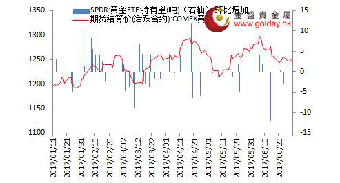 上一交易日現(xiàn)貨黃金開盤1248.99美元/盎司,最高1253.0254.49美元/盎司,最低1239.65美元/盎司,收盤1245.14美元/盎司,收盤小幅下跌3.82美元,跌幅0.31%。日內(nèi)來看,金價(jià)早盤略有拉升,之后持續(xù)維持震蕩走勢(shì),午后出現(xiàn)大幅回落,晚間以偏弱震蕩為主,全天總體呈現(xiàn)小幅回落。美元指數(shù)進(jìn)一步回落,消息面并無短期利空,主要現(xiàn)貨投資者資金量不變,技術(shù)面上短期或以震蕩為主。 圖1黃金價(jià)格走勢(shì) 消息面上看,昨日公布的數(shù)據(jù)顯示美國(guó)第一季度GDP環(huán)比折年率增幅終值自1.2%上修至1.4%,受消費(fèi)和貿(mào)易提振。GDP上修的情況超出市場(chǎng)預(yù)期,但平減指數(shù)向下修正,顯示通脹回升速度依然不快。美聯(lián)儲(chǔ)方面,圣路易斯聯(lián)儲(chǔ)行長(zhǎng)Bullard重申當(dāng)前利率適當(dāng)?shù)挠^點(diǎn),并認(rèn)為在9月做出收縮資產(chǎn)負(fù)債表決定的可能性大于7月,縮表不會(huì)攪動(dòng)市場(chǎng)。我們認(rèn)為,上述變動(dòng)可能將令9月美聯(lián)儲(chǔ)加息的迫切性降低,支持了9月宣布開始縮表并在12月開始加息的可能性,這對(duì)金價(jià)并非利空,但經(jīng)濟(jì)走強(qiáng)對(duì)金價(jià)市中長(zhǎng)期的利空。 另外,美國(guó)財(cái)長(zhǎng)努欽稱,當(dāng)特朗普政府官員9月份同國(guó)會(huì)領(lǐng)導(dǎo)人拿出一份共同的稅收計(jì)劃時(shí),將做到完全透明,這可能暗示8月國(guó)會(huì)休會(huì)之前特朗普政府的稅改計(jì)劃可能難以通過。我們認(rèn)為,市場(chǎng)的“特朗普交易”的情緒回落,對(duì)金價(jià)也是偏多的。 歐洲方面,德國(guó)6月份通脹率意外加速,從1.4%升至1.5%,讓正在思考撤出量化寬松政策的歐洲央行官員們松了一口氣。此前歐央行行長(zhǎng)德拉吉偏鷹派的講話曾引起市場(chǎng)震動(dòng),雖然隨后予以澄清,但是我們認(rèn)為9月歐洲央行將迎來貨幣政策的轉(zhuǎn)向,即使沒有直接加息,也將明確指出未來收緊的方向,歐元上行趨勢(shì)將進(jìn)一步鞏固,美元指數(shù)將受壓制,對(duì)金價(jià)有一定支撐。