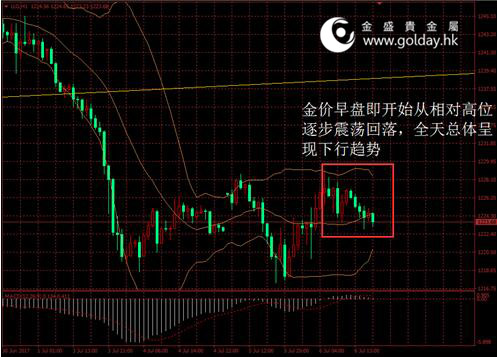 今日現(xiàn)貨黃金開盤1226.70美元/盎司,截至北京時間下午5點20分,最高價格為1229.02美元/盎司,最低價格為1222.95美元/盎司。日內(nèi)來看,金價早盤即開始從相對高位逐步震蕩回落,全天總體呈現(xiàn)下行趨勢。美元指數(shù)小幅沖高后回落,技術(shù)面中性偏弱,消息面冷清,市場等待今晚的ADP數(shù)據(jù)。 圖 1 金價日內(nèi)走勢 消息面今天較為平靜。此前,聯(lián)合國安理會就朝鮮最新挑釁行動召開緊急會議,美國代表稱,朝鮮的導(dǎo)彈試射正在迅速關(guān)閉外交解決的大門,倘若必要美國將對朝鮮動武。這一表態(tài)可能將加劇地緣形勢的緊張。中國和俄羅斯尚未有明顯區(qū)別于此前的態(tài)度。同時,中國邊界被印度越界一事尚未解決,地緣政治形勢正在逐步惡化,這對金價是潛在的利多。此外今晚將公布的ADP就業(yè)數(shù)據(jù)看,由于前期ISM就業(yè)等數(shù)據(jù)已經(jīng)走強,因此需要警惕數(shù)據(jù)走高造成的不利影響。 市場層面看,日本股市受朝鮮緊張局勢拖累收低,建筑類股因災(zāi)害重建需求而上揚,日經(jīng)指數(shù)跌0.4%至19994.06點。中國股市續(xù)創(chuàng)逾兩個半月收盤新高,但獲利回吐壓力加大,上證綜指收報3212.44點,漲5.31點或0.17%。香港股市收跌,此前美聯(lián)儲會議記錄顯示,美聯(lián)儲內(nèi)部對未來升息步伐缺乏共識,恒生指數(shù)下跌0.2%至25465.22點。匯率方面,美聯(lián)儲公布會議記錄后美元反彈遇阻,市場正在關(guān)注ADP和非農(nóng)就業(yè)數(shù)據(jù)。國際能源價格受美國原油庫存下降推動而上漲,布倫特油價反彈超過1%。 技術(shù)面上看,昨日金價停止進(jìn)一步下探上一個低點1214美元附近后,有所企穩(wěn)并小幅反彈,技術(shù)面繼續(xù)得到修復(fù),但總體走勢仍較弱,投資者謹(jǐn)慎等待今晚的ADP和明日非農(nóng)數(shù)據(jù)。短期來看,下一強支撐位位于1200美元整數(shù)關(guān)口附近,上方1238美元位置則已形成壓力。中期來看,1260美元附近的壓力也需要予以警惕,上方重要壓力仍在1295至1300美元附近。 今晚8點15分公布美國6月ADP就業(yè)人數(shù)變動,10點公布美國6月ISM非制造業(yè)指數(shù),上述數(shù)據(jù)需要予以關(guān)注。 投資有風(fēng)險,入市需謹(jǐn)慎。以上建議僅供參考,不作為唯一投資依據(jù)。