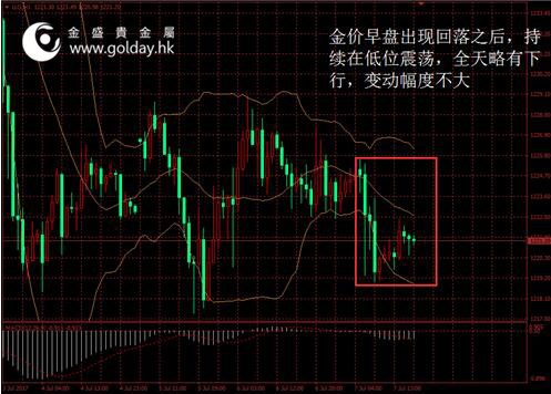 今日現(xiàn)貨黃金開盤1225.03美元/盎司,截至北京時間下午5點20分,最高價格為1225.57美元/盎司,最低價格為1218.98美元/盎司。日內(nèi)來看,金價早盤出現(xiàn)回落之后,持續(xù)在低位震蕩,全天略有下行,變動幅度不大。美元指數(shù)小幅反彈,日內(nèi)消息面平靜,技術(shù)面變動也不大,投資者謹慎等待今晚非農(nóng)等就業(yè)數(shù)據(jù)。 圖 1 金價日內(nèi)走勢 消息面今天較為平靜。對于今晚將公布的非農(nóng)等就業(yè)數(shù)據(jù),我們通過觀察發(fā)現(xiàn),前期已經(jīng)公布的一系列相關(guān)就業(yè)數(shù)據(jù)中:截至6月底的首次申領(lǐng)失業(yè)救濟人數(shù)較5月底數(shù)據(jù)有所增加,持續(xù)申領(lǐng)失業(yè)救濟人數(shù)也有所增長。ISM的制造業(yè)PMI就業(yè)分項上行,但非制造業(yè)PMI就業(yè)分項回落。昨日公布的ADP就業(yè)數(shù)據(jù)則有所走弱。總體來看,先行指標變動趨勢差異較大,但總體可能預(yù)示著非農(nóng)不會太強。我們認為可能將會低于18萬的中樞或17.7萬的市場預(yù)期值,但總體偏離幅度可能不大,對市場的沖擊有限且將集中在日內(nèi)層面。 市場層面看,日本股市跌至三周低位,未理會日本央行增購公債的決定,日經(jīng)指數(shù)跌0.3%至19929.09點。中國股市收創(chuàng)逾兩個半月新高,市場信心明顯恢復(fù)大盤料續(xù)上行,上證綜指收報3217.96點,漲5.52點或0.17%。香港股市收低創(chuàng)四個月來最大單周跌幅,受央行政策緊縮疑慮打擊,恒生指數(shù)周五收跌0.5%。匯率方面,日央行增購公債將美元兌日圓推至七周高點,歐元微降,美元指數(shù)小幅訪談。債市方面,歐元債市大跌后整理跌幅,此前歐洲央行縮減刺激擔憂重創(chuàng)市場。國際能源價格下跌,有關(guān)美國石油產(chǎn)量增加的消息加重供應(yīng)疑慮,此前已有報導(dǎo)稱OPEC產(chǎn)量亦增加,布倫特油價跌2.6%。 技術(shù)面上看,此前金價在暫時下探至前期低點1214美元附近后,有所企穩(wěn)并保持震蕩走勢,技術(shù)面持續(xù)修復(fù),但總體走勢仍較弱,可關(guān)注近期低位即1216美元的日內(nèi)支撐。短期來看,下一強支撐位于1200美元整數(shù)關(guān)口附近,上方1238美元位置則已形成壓力。中期來看,1260美元附近的壓力也需要予以警惕,上方重要壓力仍在1295至1300美元附近。 此外,今晚8點30分將公布美國非農(nóng)和失業(yè)率等就業(yè)數(shù)據(jù),今明兩日召開G20峰會,上述事件需要重點關(guān)注。 投資有風險,入市需謹慎。以上建議僅供參考,不作為唯一投資依據(jù)。