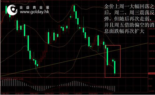 上周現貨黃金開盤1241.53美元/盎司,最高1241.87美元/盎司,最低1207.16美元/盎司,收盤1209.64美元/盎司,全周金價大幅回落31.16美元,跌幅2.51%。整體來看,金價上周一大幅回落之后,周二、周三震蕩反彈,但隨后再次走弱,并且周五借助偏空的消息面跌幅再次擴大。美元指數沖高回落,消息面則為偏空,現貨持倉資金大幅流出,技術面進一步走弱。 圖1上周金價走勢 消息面上看,上周公布的數據顯示,美國6月份ISM制造業指數回升至2014年8月以來最高,非制造業指數也有所上升。但是5月工廠訂單以及耐用品數據回落程度增加。具體來看,ISM指數中原材料庫存和價格同比回落,產成品庫存略有增加但弱于季節性表現。新訂單和新出口訂單增長明顯,生產指數也大幅回升。此外,周五公布的更重要的非農數據則大幅超出預期,其中商品生產和服務生產同步增加的同時,政府雇員人數大幅上升。同時失業率略有上行0.1%,時薪同比增速略有回升。總體來看,前期經濟走弱對就業的影響并不明顯,并且先行公布的經濟指標顯示經濟擴張的動能可能正在回歸,這可能將會助長美聯儲四季度再加息一次的信心。
