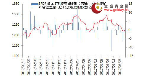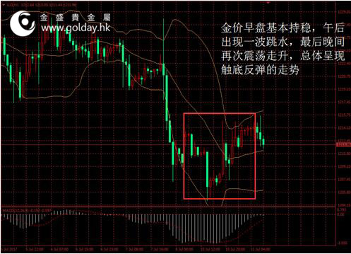 上一交易日現貨黃金開盤1212.94美元/盎司,最高1214.99美元/盎司,最低1204.68美元/盎司,收盤1214.05美元/盎司,收盤上漲4.41美元,漲幅0.36%。日內來看,金價早盤基本持穩,午后出現一波跳水,最后晚間再次震蕩走升,總體呈現觸底反彈的走勢。美元指數沖高回落變動不大,消息面影響也較小,主要現貨投資者,技術面偏空的情況有所緩和。 圖1黃金價格走勢 消息面上看,昨日公布的數據顯示,美國6月就業市場狀況指數(LMCI)報1.5,低于預期的2.5和前值的2.3。但結合此前的非農等一系列數據來看,美國就業仍保持較為強勢的狀態。貨幣政策方面,紐約聯儲的一份報告顯示,美聯儲資產負債表可能在2020-2023年期間實現正常化。其據基線預測,2018年預計將有1740億美元的國債被贖回,并將有2520億美元進行再投資。這相對于目前國債的市場日均5000億美元的成交量來看非常小,因此我們認為縮表實質上對市場的直接影響極小,僅對市場情緒有不利影響。 此外,有媒體報道稱,特朗普長子去年在美國總統競選期間與一名俄羅斯女子見面,后者稱可以提供可能有損希拉里形象的訊息。美國參議員呼吁參議院情報委員會對此事展開調查。但其他部門尚未有回應,并且市場對此反應平靜,我們將繼續關注該事件。
