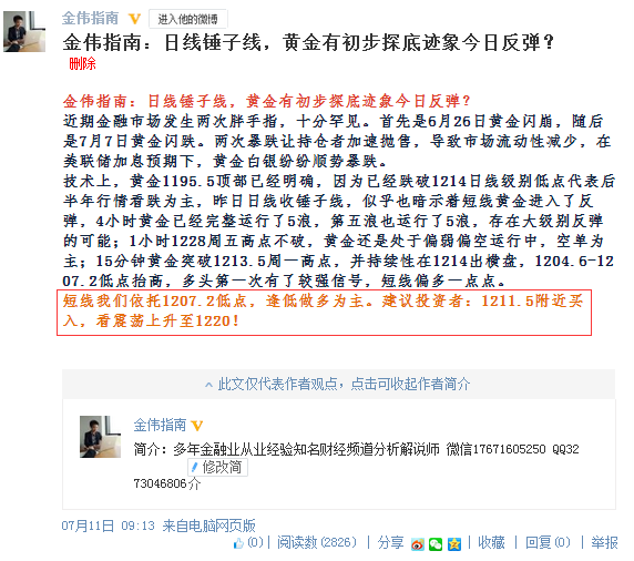 金偉指南:耶倫來了又奈何,鐵定一條心去做多黃金看漲! 黃金突破1215.6昨日高點說明些問題,更能說明問題的是突破1215.6高點后,早盤走了延伸,說明市場更認可這次反彈。價格最高觸及1220,然后橫盤。請注意,橫盤不是阻力,要是阻力早就一根大陰棒砸下來了。小幅橫盤小跌都是為了更好的上漲。歐盤前我們應該耐心等待回調,我不認為黃金能回調多少,能到1216附近就要買入多單了。美盤22點耶倫證詞十分重要,腥風血雨又將上演?蔁o論如何,我建議你1212上方中線布局多單,止損:1204,看1230-1240! 黃金如果這次突破1230,那么更大級別升勢進一步形成,我們屆時將更要回調布局多單。沒突破1230前我們暫時謹慎看反彈。 |