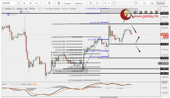 現貨黃金周四(7月13日)亞市早盤開于1217.00美元/盎司,最低下探1213.40美元/盎司,最高上漲至1225.45美元/盎司,收于1219.82美元/盎司,上漲2.72美元,漲幅0.22%。 英國央行今日表示,預計第三季度對企業的信貸維持不變;預計銀行業第三季度可用的抵押貸款將增加;三季度銀行會進一步收緊信用卡及其他無抵押貸款的標準;預計第三季度抵押貸款需求上升,但無擔保貸款需求維持不變;大公司貸款需求在第三季度將進一步下降。 英鎊暴跌推高通脹降低民眾收入,首相特雷莎·梅躺槍;英國首相特雷莎梅在上個月的大選中未能加強多數席位優勢,這其中的原因之一,就是通脹上升,而收入下降,導致英國家庭不滿;每季公布的英國家庭可支配收入較上年同期在下滑。之前約一年的時間,可支配收入同比增幅一直在放緩;而與此同時,通脹卻在上升,尤其是在英國退歐公投后,當時英鎊大幅貶值。圖表顯示,這兩組數據在去年第四季發生交叉;根據最新的兩組可比數據,通脹年率要比可支配收入同比變動高出約370個基點。 歐洲央行管委魏德曼表示,歐洲央行不應給予綠色債券優先購買待遇;歐洲央行管委魏德曼在法蘭克福就綠色金融發表講話稱,中立是歐元系統運轉框架的重要原則;為免打開潘多拉的盒子,我們不應該給予綠色債券優惠待遇,比如說在公司債券購買計劃或擔保框架下給予優待;無論何種優待,都會增加我們單一貨幣政策傳導的國別差異;綠色經濟將需要資本密集的轉型,對新技能、機構和科技進行投資;雖然公共資金很重要,但只能提供必要投資的一小部分,這意味著大部分投資需求要靠私人資本來滿足。 7月13日黃金ETFs數據顯示,截止7月12日黃金ETF-SPDR Gold Trust的黃金持倉量832.39噸,較上一交易日持平;Gold Trust 7月13日數據顯示,Gold Trust 7月12日黃金持有量211.41噸,較上一交易日持平。白銀持有量10855.49噸,較上一交易日增加61.76噸。 黃金技術分析: 現貨黃金周四(7月13日)亞盤和歐盤先小幅走高后有所回落。上方重點關注1225和1230美元/盎司附近。下方暫時關注1218美元/盎司一線,也是回調0.618的位置,如果保持上方依然保持多頭思路不變,如果下破,可能會回到1213美元/盎司附近,短線就要開始轉成偏回調的思路。 黃金操作建議: 上方阻力:1225、1230、1240-1245