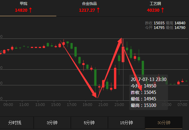 消息: 周四WTI原油期貨價格上漲1.3%,連續第四個交易日收高,創近兩周以來最高收盤價,報46.08美元/桶;布倫特油期貨收漲1.4%,報48.42美元/桶。周三美國能源信心署(EIA)公布的原油庫存連續兩周下降仍為油價提供上漲動力,但歐佩克增產仍限制油價漲幅。 天然氣微盤行情解析與操作建議: 天然氣微盤昨天的操作,很明顯是大起大落,先是一波一百多點的下跌,再來一波一百多點的上漲,天然氣微盤今日操作是順勢而開,進而筆者金革理財建議在操作上,還是以逢高做空,逢低做多為主,具體操作細節與操作點位筆者金革理財盤子給出。 黃金微盤行情解析與操作建議: 黃金微盤昨天的走勢雖然也是起起落落,但是和天然氣微盤的走勢剛好相反,而且點位波動在微盤上,也算是很不錯的,恭喜跟上的客戶,而今天白天黃金微盤在操作上,筆者金革理財建議以高位做空為主,具體操作細節和操作點位筆者金革理財盤中給出。 今日重點關注的財經數據與事件2017年7月14日 周五 ① 17:00 歐元區5月季調后貿易帳 ② 20:30 美國6月季調后CPI月率、美國6月零售銷售月率 ③ 21:15 美國6月工業產出月率 ④ 21:30 美聯儲2017年FOMC票委卡普蘭在關于美聯儲和貨幣政策的會議上發表講話 ⑤ 22:00 美國7月密歇根大學消費者信心指數初值、美國5月商業庫存月率 ⑥ 次日01:00 美國至7月14日當周石油鉆井總數 文/金革理財 |