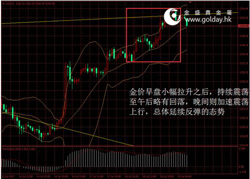 上一交易日現貨黃金開盤1233.96美元/盎司,最高1244.36美元/盎司,最低1232.67美元/盎司,收盤1242.11美元/盎司,收盤上漲8.32美元,漲幅0.67%。日內來看,金價早盤小幅拉升之后,持續震蕩至午后略有回落,晚間則加速震蕩上行,總體延續反彈的態勢。消息面上變化較小但是以利多為主,美元指數昨日再次大幅走弱刷新低點,主要現貨投資者加速減倉,技術面仍偏多且進入關鍵點位區間附近。 消息面上看,美國6月進口價格指數環比回落0.2%持平預期,好于前值的回落0.3%;同比增長1.5%強于預期的1.3%但弱于前值。總體來看,目前美國各方面的通脹增速數據均在走弱,并且年內改善的可能性較小。政府政策方面,共和黨在不到24小時的時間里兩次在醫改法案上遇挫,特朗普最新醫療改革草案未能進入參議院投票表決環節。此后共和黨希望在不推出替代方案的情況下在參院直接廢除歐巴馬醫保案,但由于內部分歧,該計劃幾乎沒有可能實現。特朗普交易的降溫對金價來說是一個利多。 歐洲方面,據未具名歐元區官員透露,歐洲央行在研究刺激舉措的未來選項,央行料在9月或更晚做出決定。此外,英國通脹率意外回落,緩解英國央行升息壓力。總體來看,目前歐美政策的邊際差異仍在減小,且從此前的歐元區即將收緊、美國加速收緊變為歐元區即將收緊、美國放慢收緊,這對除美元以外主要資產價格的影響均為偏多。這將令美元指數走勢偏弱,對金價影響偏多。