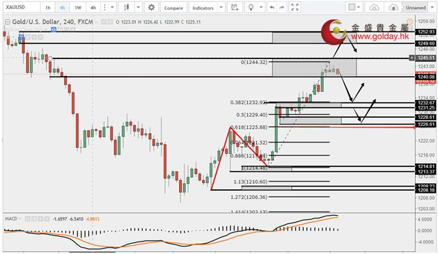 現(xiàn)貨黃金周二(7月18日)亞市早盤(pán)開(kāi)于1233.90美元/盎司,最低下探1232.51美元/盎司,最高上漲至1244.56美元/盎司,收于1242.01美元/盎司,上漲8.13美元,漲幅0.66%。