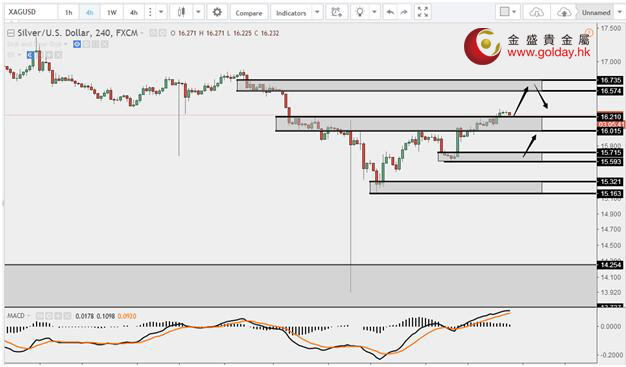 白銀技術(shù)分析: 現(xiàn)貨白銀周二(7月18日)亞盤(pán)和歐盤(pán)基本維持高位小幅橫盤(pán)震蕩的走勢(shì),美盤(pán)震蕩上行,已經(jīng)說(shuō)過(guò)考慮到上方阻力已經(jīng)測(cè)試了兩次,因此后面突破的概率大,上方關(guān)注16.00-16.20、16.35和16.57-16.73美元/盎司的支撐,首次反抽16.57-16.73區(qū)間可以考慮做空;芈湎路娇梢躁P(guān)注16.00整數(shù)關(guān)口附近的支撐。 白銀操作建議: 上方阻力:16.35、16.57-16.73 下方支撐:16.00、15.32-15.16、14.26-13.73 今日重要數(shù)據(jù): 20:30 美國(guó)6月新屋開(kāi)工總數(shù)年化(萬(wàn)戶) 20:30