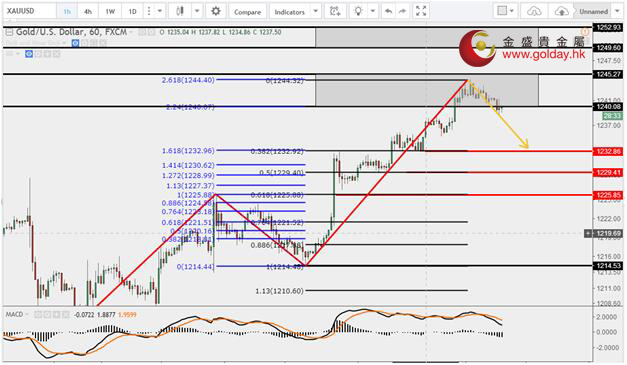 現(xiàn)貨黃金周三(7月19日)亞市早盤開(kāi)于1233.90美元/盎司,最低下探1232.51美元/盎司,最高上漲至1244.56美元/盎司,收于1242.01美元/盎司,上漲8.13美元,漲幅0.66%。 日本央行7月料維持寬松,日元下半年表現(xiàn)堪憂;明日日本央行將公布利率決議,然而盡管全球主要央行開(kāi)始偏向收緊政策,料日本央行仍然會(huì)維持寬松;路透和彭博根據(jù)隔夜掉期利率(OIS)測(cè)算的結(jié)果顯示,日本央行在7月保持利率不變的幾率分別高達(dá)99.50%和98.7%;盡管近期全球主要央行“鷹風(fēng)不斷”,加拿大央行更進(jìn)行了7年來(lái)首次加息,但市場(chǎng)普遍預(yù)計(jì)日央行此次不會(huì)加息;日本保持利率不變的原因可能在于日本通脹停滯不前,因此日本央行也可能調(diào)降其樂(lè)觀的通脹展望;此外,日本央行還可能略微上修經(jīng)濟(jì)增長(zhǎng)預(yù)期;多家投行認(rèn)為,在這一背景下,下半年日元表現(xiàn)料落后于其他主要貨幣。 一家英國(guó)貴金屬咨詢公司表示,今年波動(dòng)較大的白銀市場(chǎng)可能會(huì)在未來(lái)12個(gè)月里出現(xiàn)積極的價(jià)格上漲,較當(dāng)前上漲25%。Metals Focus的分析師George Coles昨日告訴彭博,銀價(jià)將從目前的16.27美元/盎司水平反彈至少25%,在一年內(nèi)以20.25美元/盎司的價(jià)格進(jìn)行交易。到目前為止,白銀的價(jià)格波動(dòng)很大。首先,它在2017年初上漲了17%,隨后回吐所有漲幅,盡管產(chǎn)量下降,工業(yè)需求不斷增長(zhǎng)。Coles解釋說(shuō),銀價(jià)反彈即將到來(lái)的主要原因是美國(guó)經(jīng)濟(jì)增長(zhǎng)令人失望,這將轉(zhuǎn)化為美聯(lián)儲(chǔ)的加息步伐放緩。。 Coles指出,銀價(jià)的另一種提振可能來(lái)自Comex投機(jī)者的空頭回補(bǔ),盡管銀價(jià)在過(guò)去三個(gè)月里出現(xiàn)很多阻力,但許多投資者正將資金投入白銀ETFs,資產(chǎn)達(dá)到創(chuàng)紀(jì)錄的21,211噸,價(jià)值110億美元。但與此同時(shí),Coles指出,期貨市場(chǎng)仍然看跌,因?yàn)閷?duì)沖基金在兩年內(nèi)持有第一個(gè)凈空頭寸。Coles指出,這兩種截然相反的趨勢(shì)得到了兩種不同類型的投資者的支持——小型交易員購(gòu)買了白銀ETFs,以分散他們的投資組合,而大型對(duì)沖基金則做空了Comex期貨。 7月19日黃金ETFs數(shù)據(jù)顯示,截止7月18日黃金ETF-SPDR Gold Trust的黃金持倉(cāng)量821.45噸,較上一交易日減少5.62噸;Gold Trust 7月19日數(shù)據(jù)顯示,Gold Trust 7月18日黃金持有量211.41噸,較上一交易日持平。白銀持有量10826.08噸,較上一交易日減少29.41噸。 黃金技術(shù)分析: 現(xiàn)貨黃金周三(7月19日)亞盤和歐盤小幅震蕩下行。上方關(guān)注1240-1245和1250-1253美元/盎司區(qū)間,首次達(dá)到區(qū)間可以做空。下方目前關(guān)注1234-1233、1231-1229和1225美元/盎司區(qū)間,回落獲得支撐可以做多。目前反彈形態(tài)良好,高點(diǎn)和低點(diǎn)逐漸抬高的形態(tài)未改變之前,思路盡量以回調(diào)做多為主,目前1255是多頭趨勢(shì)的多空分水,不破1255從技術(shù)上都要看多頭。 黃金操作建議: 上方阻力:1240-1245、1250-1253
