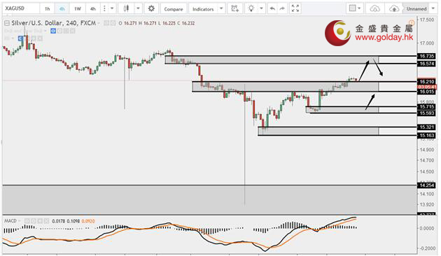 下方支撐:1234-1233、1231-1229、1226-1225 白銀技術(shù)分析: 現(xiàn)貨白銀周三(7月19日)亞盤和歐盤基本維持高位小幅橫盤震蕩的走勢(shì),有小幅的回調(diào),上方關(guān)注16.35和16.57-16.73美元/盎司的支撐,首次反抽16.57-16.73區(qū)間可以考慮做空。回落下方可以關(guān)注16.00整數(shù)關(guān)口附近的支撐。 白銀操作建議: 上方阻力:16.35、16.57-16.73 下方支撐:16.00、15.32-15.16、14.26-13.73 今日重要數(shù)據(jù): 20:30 美國(guó)6月新屋開(kāi)工總數(shù)年化(萬(wàn)戶) 20:30 美國(guó)6月?tīng)I(yíng)建許可總數(shù)(萬(wàn)戶) 22:30 美國(guó)至7月14日當(dāng)周EIA原油庫(kù)存(萬(wàn)桶)
