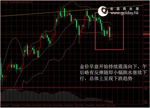今日現貨黃金開盤1240.49美元/盎司,截至北京時間下午5點50分,最高價格為1242.38美元/盎司,最低價格為1236.43美元/盎司。日內來看,金價早盤開始持續震蕩向下,午后略有反彈隨即小幅跳水繼續下行,總體上呈現下跌趨勢。美元指數第二日反彈,消息面變動略偏空,技術面走勢偏空。 圖 1金價日內走勢 消息面上看,數據顯示德國6月PPI環比和同比均略超預期,但我們認為歐元區通脹大幅上行的風險暫時不存在。日本進口同比增長15.5%超預期但比前值有所回落,出口則大幅回落至9.7%。總體來看全球經濟復蘇帶來的外需對日本經濟仍有帶動作用。此外,日本央行宣布利率決議,將實現2%通脹的目標時間從2018年推遲至2019年,并保持-0.1%的政策利率不變。此外,日本央行還在會議紀要中表達了對日本當下經濟的看法,稱通脹不夠強勁,經濟存在下行風險。日本央行行長黑田東彥表示,經濟及物價面臨的風險偏下行,且通脹預期的上升有所推遲,并再次強調日本央行將堅定地繼續實行有力的寬松政策,且不排除繼續擴大寬松或調整貨幣政策的可能。該表態較為鴿派,顯示日本央行在今年難有實質性收緊的政策出臺,日元因此走弱,推動美元指數反彈,對金價影響偏空。 市場層面看,日本股市收高,因日本央行推遲了通脹目標實現的時間,并暗示短期之內難以收緊政策,日經指數上漲123.73點或0.62%至20144.59點。中國股市收升續創逾三個月新高,以中小盤股為代表的創業板超跌反彈動力偏強,而近期強勢板塊因短線獲利回吐壓力加大處于休整狀態,上證綜指上漲13.89點或0.43%至3244.86點。香港股市刷新兩年最高收位,受科技股提振,恒生指數收高0.3%或68.05點,報收于26740.21點。匯率方面,日元受到日本央行政策影響走弱,美元指數有所走強。國際能源價格方面,此前公布的數據顯示美國原油和汽油庫存降幅大于預期,但油價反彈未能持續,布倫特油價基本持平。 技術面上看,金價繼續從此前的高點即1241美元附近的壓力位置震蕩回落,空頭力量仍然略強。短期來看,該點位仍需要繼續關注,謹防金價進一步震蕩回落,支撐位則可關注1217美元一帶,日內可關注1235美元位置是否有有限支撐,下一個壓力位則位于1260美元左右。中期來看,1295至1300美元附近仍是重要壓力位,下方重要支撐仍位于1200美元整數關口,中期可暫按照震蕩反彈對待。 此外,今晚8點45分歐洲央行將公布政策利率以及未來資產購買等貨幣政策的方向,需要重點關注。 投資有風險,入市需謹慎。以上建議僅供參考,不作為唯一投資依據。 金盛貴金屬投資分析部