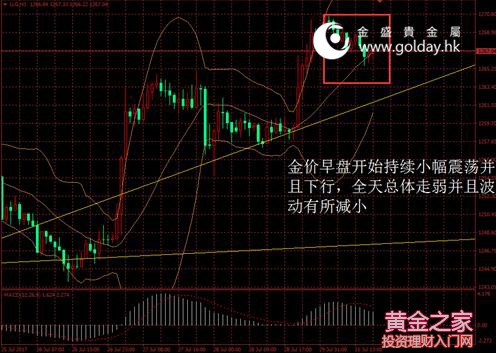 今日現貨黃金開盤1259.25美元/盎司,截至北京時間下午5點30分,最高價格為1270.62美元/盎司,最低價格為1265.63美元/盎司。日內來看,金價早盤開始持續小幅震蕩并且下行,全天總體走弱并且波動有所減小。美元指數從一年多以來低位反彈,消息面平靜,技術面總體中性略偏空。 圖1金價日內走勢 消息面上看,今日公布的數據顯示,歐元區7月CPI同比增速初值報1.3%,持平于前值和預期,核心CPI同比增長1.2%,略高于前值1.1%和預期1.1%。總體來看歐元區通脹證如我們所料的進入短暫的穩定階段,甚至不排除有超預期反彈的可能性,這是令市場預期歐洲央行收緊政策的潛在因素,對金價而言也是潛在的偏多因素。 此外數據顯示,日本6月工業產出同比和環比增速均超預期增長,中國7月官方制造業PMI略有回落,主要是由于產出分項回落,表現需求的新訂單等數據回落有限,且價格分項大幅上升。總體來看,中國和日本,以及全球經濟復蘇的趨勢仍不變,這對未來通脹回升將是正面影響因素。 市場層面看,日本股市創六周半最低收位,指數權重股遭拋售,日經指數收跌0.2%至19925.18點。中國股市收創三個半月新高周期股領漲,后市有望沖擊3300點,上證綜指收報3273.03點,漲19.79點或0.61%。香港股市連續七個月收漲,受資源類股漲勢提振,恒生指數今日收漲1.3%至27323.99點。匯率方面,美元指數持穩在近13個月低點,本周將公布多項數據或將決定美元指數下一步的運行方向。國際能源價格觸及兩個月高位,美國市場收緊,且委內瑞拉可能將遭制裁,布倫特油價反彈0.23%。 技術面上看,金價上周五已經向上突破1260美元位置,雖然今日出現小幅回調,但是趨勢上仍保持偏多的態勢。短期來看我們仍保持樂觀,1257美元-1260美元可暫視作支撐位,趨勢上可能延續目前方向至1300美元。中期來看,1295至1300美元附近仍是重要壓力位,下方重要支撐仍位于1200美元整數關口,中期可暫繼續按照震蕩反彈對待。 投資有風險,入市需謹慎。以上建議僅供參考,不作為唯一投資依據。