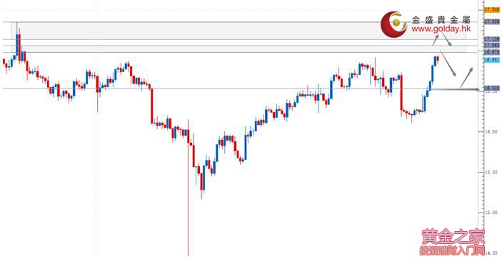 下方支撐:1262、1260.50-1259.50、1255.40-1253.80 白銀技術(shù)分析: 現(xiàn)貨白銀周三(8月9日)亞盤和歐盤逐步延續(xù)震蕩上行的走勢,美盤也是逐步上行。上方重點(diǎn)關(guān)注區(qū)域是16.97-17.06和17.14-17.36美元/盎司的阻力,尤其是17.14-17.36目前看有較大概率會(huì)出現(xiàn)回調(diào)反轉(zhuǎn)。下方關(guān)注16.50、15.90-16.03和15.70-15.60美元/盎司支撐區(qū)域。 白銀操作建議: 上方阻力:16.97-17.06、17.14-17.36 下方支撐:16.50、15.90-16.03、15.70-15.60 今日重要數(shù)據(jù): 20:30 美國至8月5日當(dāng)周初請失業(yè)金人數(shù)(萬人) 20:30 美國7月PPI月率 21:45 美國至8月6日當(dāng)周彭博消費(fèi)者信心指數(shù) 22:30 美國至8月4日當(dāng)周EIA天然氣庫存(億立方英尺) 22:00 美國紐約聯(lián)儲(chǔ)主席杜德利參加關(guān)于就業(yè)趨勢和薪酬不均的經(jīng)濟(jì)簡報(bào)會(huì)