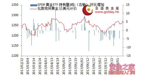 資金面上,全球最大的黃金上市交易基金SPDR Gold Trust的黃金持倉量上一個交易日不變,目前持倉量仍為786.87噸,此前一個交易日倉位也不變,上次變動是周一減倉0.27噸。目前來看,現貨投資者連續(xù)32個交易日沒有增倉,顯示出其謹慎偏向悲觀的態(tài)度,對這一情況對金價形成的壓力仍需保持警惕。 圖2黃金ETF倉位變動情況 市場層面看,美國股市接近持平,蒂勒森試圖緩解對朝鮮開戰(zhàn)的擔憂,標普500指數基本持平報2474.02點;歐洲股市下跌,因美國和朝鮮的緊張局勢升級,斯托克歐洲600指數下跌0.7%報379.84點。債市方面,避險需求推升美國國債,10年債發(fā)行疲軟拖累漲幅縮小;歐洲債市同樣受到避險情緒影響而普遍回落。匯率方面,美元指數在回吐盤中升幅后近持平,盤中大幅波動,地緣政治緊張情勢居高不下,瑞郎則出現暴漲。國際能源價格大幅上漲,此前報告顯示上周美國煉廠加工量升至紀錄高位,導致原油庫存減少,布倫特油價漲幅約1.6%。 技術面上看,金價早盤開始一直全天持續(xù)震蕩走上,并且有多次小幅拉升,多頭態(tài)度非常積極。這也是受到避險情緒等方面的利多影響。金價初步突破了1270-1275美元一帶的壓力,日內或將進一步整固。短期來看,如果消息面仍配合則金價有望沖擊1300美元壓力,下方支撐則位于1260美元、1240美元附近;中期來看,空頭壓力暫時緩解,下方重要支撐位于1220美元和1200美元整數關口。 投資有風險,入市需謹慎。以上建議僅供參考,不作為唯一投資依據。
