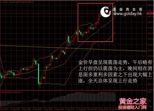 上一交易日現(xiàn)貨黃金開盤1277.32美元/盎司,最高1287.66美元/盎司,最低1274.52美元/盎司,收盤1286.12美元/盎司,收盤上漲9.06美元,漲幅0.71%。日內(nèi)來看,金價早盤呈現(xiàn)震蕩走勢,午后略有上行但仍以震蕩為主,晚間則在消息面多重利多因素之下出現(xiàn)大幅上漲,全天總體呈現(xiàn)上行走勢。美元指數(shù)略有回落,消息面利多為主,主要現(xiàn)貨投資者倉位不變,技術(shù)面仍保持強勢。 圖1黃金價格走勢 消息面上看,昨日公布的數(shù)據(jù)顯示,美國7月PPI和核心PPI分別同比增長1.9%和1.8%,環(huán)比增長-0.1%和-0.1%,所有數(shù)據(jù)均低于預(yù)期以及低于前值。顯示出美國上游通脹水平在短期內(nèi)仍然保持疲弱,這可能從一定程度上促使美聯(lián)儲推遲加息的概率上升。但美國紐約聯(lián)儲總裁杜德利仍強調(diào)有關(guān)通脹將會反彈的預(yù)期。他還表示美元疲弱應(yīng)扶助推高進口物價,進而扶助推升通脹。而根據(jù)聯(lián)邦基金利率期貨,目前市場隱含的12月加息的概率已經(jīng)下降至40%附近,市場正在逐步認為年內(nèi)再次升息的可能性不大,這對金價而言影響偏多。 政治事件方面,特朗普繼續(xù)向朝鮮施壓,警告金正恩政權(quán)說若對美國或美國盟友“做出任何事情”,后果將絕非如同他們所料。此前朝鮮曾表態(tài)稱將在8月中旬對美國關(guān)島進行軍事打擊。美朝緊張局勢升級令VIX指數(shù)、美債收益率大幅飆升,這表明市場的避險情緒仍然較為強烈,對黃金的利多作用仍在持續(xù)。