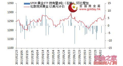 資金面上,全球最大的黃金上市交易基金SPDR Gold Trust的黃金持倉量上一個交易日不變,目前持倉量仍為786.87噸,此前一個交易日倉位也不變,上次變動是周一減倉0.27噸。目前來看,現(xiàn)貨投資者連續(xù)32個交易日沒有增倉,顯示出其謹(jǐn)慎偏向悲觀的態(tài)度,但與金價走勢已經(jīng)持續(xù)背離,這一情況我們將繼續(xù)關(guān)注。 圖2黃金ETF倉位變動情況 市場層面看,美國股市創(chuàng)5月以來最大跌幅,市場涌現(xiàn)避險需求,標(biāo)普500指數(shù)下跌1.4%報2438.21點;歐洲股市連續(xù)第二天下跌,收于3月以來最低點,因朝鮮和美國間的地緣緊張局勢持續(xù),斯托克歐洲600指數(shù)下跌1%,報376.05點。債市方面,美國國債收益率曲線牛市趨平,在地緣政治風(fēng)險造成股市下跌之際,債市受到避險需求的推動;歐元區(qū)債市也繼續(xù)上行。匯率方面,美元止步四連漲并回吐早盤升幅,受美國7月份生產(chǎn)者價格意外下跌和美國國債收益率走低拖累。國際能源價格大幅下行,WTI原油收在49美元/桶下方,未守住盤中漲幅,布倫特油價則沖高回落最終收跌接近2%。 技術(shù)面上看,金價早盤呈現(xiàn)震蕩走勢,午后略有上行但仍以震蕩為主,晚間則在消息面多重利多因素之下出現(xiàn)大幅上漲,全天總體呈現(xiàn)上行走勢,基本符合我們的預(yù)期,在消息面帶來的避險情緒降溫之前,多頭仍有進一步上攻的力量。短期來看不排除嘗試進攻1300美元的可能性,但1300美元至1310前高位置附近壓力較為明顯,下方支撐則位于1260美元、1240美元附近;中期來看,下方重要支撐位于1220美元和1200美元整數(shù)關(guān)口。 投資有風(fēng)險,入市需謹(jǐn)慎。以上建議僅供參考,不作為唯一投資依據(jù)。