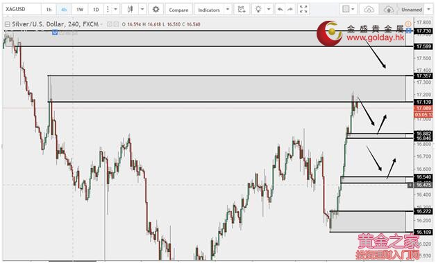 下方支撐:1279、1275、1260.50-1259.50 白銀技術(shù)分析: 現(xiàn)貨白銀周四(8月10日)亞盤和歐盤保持上行走勢(shì),美盤再走高,達(dá)到上方阻力第二區(qū)間。上方重點(diǎn)關(guān)注區(qū)域是17.14-17.36美元/盎司的阻力,昨日說(shuō)過(guò)17.14-17.36目前看有較大概率會(huì)出現(xiàn)回調(diào)反轉(zhuǎn)。不破空單持有,上破則觀望,但不追多,關(guān)注17.60-17.73美元/盎司。下方關(guān)注16.85、16.50、15.90-16.03美元/盎司支撐區(qū)域。 白銀操作建議: 上方阻力:17.14-17.36、17.60-17.73 下方支撐:16.85、16.50、15.90-16.03 今日重要數(shù)據(jù): 20:30 美國(guó)至8月5日當(dāng)周初請(qǐng)失業(yè)金人數(shù)(萬(wàn)人) 20:30 美國(guó)7月PPI月率 21:45 美國(guó)至8月6日當(dāng)周彭博消費(fèi)者信心指數(shù) 22:30 美國(guó)至8月4日當(dāng)周EIA天然氣庫(kù)存(億立方英尺) 22:00 美國(guó)紐約聯(lián)儲(chǔ)主席杜德利參加關(guān)于就業(yè)趨勢(shì)和薪酬不均的經(jīng)濟(jì)簡(jiǎn)報(bào)會(huì)