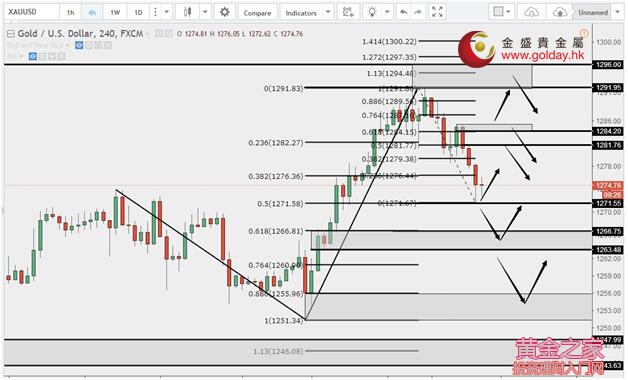 現貨黃金周二(8月15日)亞市早盤開于1288.81美元/盎司,最低下探1278.38美元/盎司,最高上漲至1289.73美元/盎司,收于1281.86美元/盎司,下跌6.94美元,跌幅0.54%。 今晚將公布美國7月零售銷售月率和核心零售銷售月率,巴克萊銀行預計分別上漲0.2%和0.1%,前值均下降0.2%;瑞典北歐斯安銀行預計均上漲0.3%,前值均下降0.2%。 德國第二季度未季調GDP初值同比下跌,但好于預期;德國第二季度GDP增長受益于國內需求強勁,政府支出和個人消費大幅增長;但德國第二季度外貿收入受挫,因進口增幅大于出口;建筑和設備投資同樣支持了第二季度的總體GDP增長。 英國7月CPI年率不及預期,路透評英國7月CPI數據:由于物價壓力緩解,英國消費者價格指數7月出人意料地保持穩定,因為燃料價格下跌,而其他跡象表明,家庭支出緊縮程度可能逐漸開始平穩;制造業原材料成本增速創逾五年最慢,因為英國脫歐公投的初步影響已漸消退;燃料價格下跌,食品、服裝和家用商品價格上漲,使得通脹率在7月保持穩定;對制造商來而言,有一個好消息是:英國7月未季調輸入PPI年率從6月的9.9%下降至了6.5%,降幅創2012年4月以來最大;分析師預計,對通脹更趨溫和的看法,將減少英國央行決策者加入“加息陣營”的人數。 英國脫歐大臣戴維斯表示,想要在脫歐后有一段時間來安排與歐盟的貿易使其不受影響;英國希望保留一份短期時間內不受限制的英歐貿易協定,自英國脫歐起生效;作為脫歐談判的一部分,我們正在就脫歐費用進行長時間的談判;歐盟首席談判代表在脫歐費用的問題上與英國意見相去甚遠,但這個問題會得到解決;歐盟近期對于可能解體的風險充滿恐懼,但現在這種情緒已經有所消退。 8月15日黃金ETFs數據顯示,截止8月14日黃金ETF-SPDR Gold Trust的黃金持倉量791.01噸,較上一交易日增加4.14噸;Gold Trust 8月15日數據顯示,Gold Trust 8月14日黃金持有量213.28噸,較上一交易日持平。白銀持有量10445.33噸,較上一交易日持平。 黃金技術分析: 現貨黃金周二(8月15日)亞盤和歐盤繼續從高位進一步回落。今日上方關注1281.80和1284.5美元/盎司一線附近,這兩個位置分別是反彈的0.5和0.618的黃金分割位,反彈回落的概率大,若繼續走高,依然關注1292-1296的阻力區域,下方關注1271.50、1266.70-1263、1256-1251三個支撐區域。一但下破4小時前低,1248-1243是較好的做反彈區域。 黃金操作建議: 上方阻力:1281.70、1284.50、1292.20-1296、1300