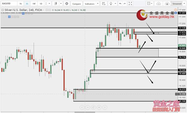 下方支撐:1271.50、1266.70-1263.40、1256、1248-1243 白銀技術分析: 現貨白銀周二(8月15日)亞盤和歐盤高位小幅微微反彈,維持低位震蕩。上方短線關注17.05美元/盎司附近的阻力,以及上周說過的17.14-17.36區域,下方關注16.72、16.50、15.27-15.10美元/盎司支撐區域,但是16.72不是做多的位置,只是說下破16.72,短線才能看到16.50附近的意思。 白銀操作建議: 上方阻力:17.14-17.36、17.60-17.73 下方支撐:16.84-16.72、16.50、15.90-16.03 今日重要數據: 20:30 美國7月零售銷售月率 20:30 美國7月進口物價指數月率 20:30 美國8月紐約聯儲制造業指數 22:00 美國8月NAHB房產市場指數 22:00 美國6月商業庫存月率
