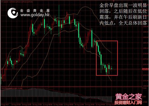 今日現(xiàn)貨黃金開盤1281.68美元/盎司,截至北京時間下午5點30分,最高價格為1281.83美元/盎司,最低價格為1272.58美元/盎司。日內(nèi)來看,金價早盤出現(xiàn)一波明顯回落,之后隨后在低位震蕩,并在午后刷新日內(nèi)低點,全天總體回落。美元指數(shù)出現(xiàn)反彈,消息面相對前期較為平靜,技術面仍以弱勢為主。 圖 1 金價日內(nèi)走勢 消息面上看,日內(nèi)公布的數(shù)據(jù)顯示,英國國家統(tǒng)計局公布,7月CPI較前月下降0.1%,較上年同期上升2.6%,此前市場預期分別為持平和上升2.7%;7月PPI較前月上升0.1%,較上年同期上升3.2%,同比漲幅為2016年12月以來最低;PPI投入物價較上年同期上升6.5%,為2016年7月以來最低。總體來看,英國7月消費者物價通脹意外持穩(wěn),因為能源價格下降。其他跡象也顯示,家庭購買力所承受的壓力可能正在慢慢趨于平穩(wěn)。英鎊大幅回落,推高了美元指數(shù),并令金價承壓。 市場層面看,日本股市結束四連跌收漲1.1%,因美朝緊張局勢相關擔憂緩解,日經(jīng)指數(shù)收漲1.1%至19753.31點。中國股市連續(xù)第二日收升,金融板塊再度領漲,但大盤短線或受壓,上證綜指收報3251.26點,漲13.90點或0.43%。香港股市收跌,獲利了結壓力超過了銀行類股表現(xiàn)強勁所提供的支撐,恒生指數(shù)跌0.3%收報27174.96點。匯率方面,美元兌日圓和瑞郎的漲勢帶動美元全線走升,因美朝之間的緊張局勢暫時緩和。國際能源價格基本持穩(wěn),隔夜油價曾因美元走高及中國擔憂而大跌,,布倫特油價微漲0.18%。 技術面上看,金價早盤出現(xiàn)一波明顯回落,之后隨后在低位震蕩,并在午后刷新日內(nèi)低點,全天總體回落。目前資金面和技術面以及消息面似乎正在出現(xiàn)分歧,短期來看金價走勢或仍偏弱,如回調(diào)第一位置可能為1260美元,即避險因素開始主導市場的起始點,此外還可關注1240美元位置附近的支撐。中期來看,下方重要支撐位于1220美元和1200美元整數(shù)關口,1300美元上下仍為重要壓力位置。 此外,今晚8點30分將公布美國7月零售銷售數(shù)據(jù),需要予以關注。 投資有風險,入市需謹慎。以上建議僅供參考,不作為唯一投資依據(jù)。