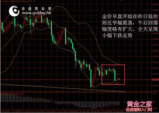 今日現(xiàn)貨黃金開(kāi)盤(pán)1271.19美元/盎司,截至北京時(shí)間下午5點(diǎn)20分,最高價(jià)格為1273.84美元/盎司,最低價(jià)格為1269.15美元/盎司。日內(nèi)來(lái)看,金價(jià)早盤(pán)開(kāi)始在昨日低位附近窄幅震蕩,午后回落幅度略有擴(kuò)大,總體呈現(xiàn)低位震蕩走勢(shì)。美元指數(shù)基本持平,午后振幅擴(kuò)大。消息面仍然保持平靜,技術(shù)面中性偏弱。 圖 1 金價(jià)日內(nèi)走勢(shì) 消息面上看,今天公布的數(shù)據(jù)顯示,歐元區(qū)二季度GDP環(huán)比修正值為0.6%,符合初值和預(yù)期,但同比增速?gòu)?/span>2.1%上修至2.2%,超出市場(chǎng)預(yù)期。總體來(lái)看,歐元區(qū)經(jīng)濟(jì)復(fù)蘇的情況仍在延續(xù)。歐央行方面,有知情消息人士表示,歐央行行長(zhǎng)德拉吉將不會(huì)在杰克森霍爾會(huì)議上發(fā)出新的政策信息,減弱了外界關(guān)于歐洲央行即將開(kāi)始規(guī)劃退出刺激政策的預(yù)期。其同時(shí)還表示,德拉吉希望等到秋天再展開(kāi)政策討論,7月政策會(huì)議上已達(dá)成這樣的共識(shí)。9我們認(rèn)為,9月歐央行會(huì)議仍有較高的可能將對(duì)未來(lái)放慢QE進(jìn)行暗示,屆時(shí)歐元可能將有所走高,對(duì)金價(jià)有所提振。 市場(chǎng)層面看,日本股市收盤(pán)近持平,前一交易日的漲勢(shì)失去動(dòng)能,因日?qǐng)A走軟態(tài)勢(shì)放緩,日經(jīng)指數(shù)收跌0.1%至19729.28點(diǎn)。中國(guó)股市小幅收跌,追高意愿不足周期股持續(xù)調(diào)整拖累大盤(pán),上證綜指收?qǐng)?bào)3246.45點(diǎn),跌4.81點(diǎn)或0.15%。香港股市收高近1%,投資者從強(qiáng)勁的企業(yè)季度獲利中獲得鼓舞,蓋過(guò)中國(guó)經(jīng)濟(jì)放緩跡象的影響,恒生指數(shù)收高0.9%報(bào)27409.07點(diǎn)。匯率方面,美元指數(shù)持于三周高點(diǎn)附近,此前美國(guó)強(qiáng)勁的零售銷售數(shù)據(jù)刺激其上行。國(guó)際能源價(jià)格方面,油價(jià)因美國(guó)原油庫(kù)存下降而上漲,但仍受全球供應(yīng)過(guò)剩打壓,布倫特油價(jià)漲約0.87%。 技術(shù)面上看,金價(jià)早盤(pán)開(kāi)始在昨日低位附近窄幅震蕩,午后回落幅度略有擴(kuò)大,總體呈現(xiàn)低位震蕩走勢(shì)。短期來(lái)看金價(jià)走勢(shì)或仍可能繼續(xù)偏弱,1270美元附近是日內(nèi)爭(zhēng)奪的焦點(diǎn),下方1260美元附近則是重要支撐,此外還可關(guān)注1240美元位置附近的支撐。中期來(lái)看,1220美元和1200美元整數(shù)關(guān)口仍是關(guān)鍵分水嶺,1300美元附近則是重要壓力位置。 此外,今晚8點(diǎn)30分將公布美國(guó)7月房地產(chǎn)開(kāi)工,需要予以關(guān)注。 投資有風(fēng)險(xiǎn),入市需謹(jǐn)慎。以上建議僅供參考,不作為唯一投資依據(jù)。