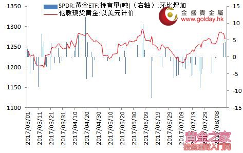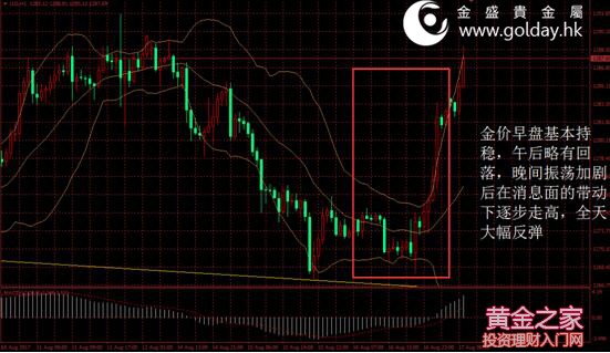 上一交易日現(xiàn)貨黃金開盤1271.19美元/盎司,最高1283.64美元/盎司,最低1267.79美元/盎司,收盤1282.82美元/盎司,收盤回落11.59美元,跌幅0.91%。日內(nèi)來看,金價(jià)早盤基本持穩(wěn),午后略有回落,晚間振蕩加劇后在消息面的帶動(dòng)下逐步走高,全天大幅反彈。美元指數(shù)再次走弱,消息面利多,主要現(xiàn)貨投資者倉位增加,技術(shù)面偏多。 圖1黃金價(jià)格走勢(shì) 消息面上看,昨日公布的數(shù)據(jù)顯示,美國(guó)7月新屋開工115.5萬戶,環(huán)比增長(zhǎng)-4.8%,大幅弱于預(yù)期和前值;7月營(yíng)建許可122.3萬戶,環(huán)比增長(zhǎng)-4.1%,也弱于預(yù)期和前值。目前來看,美國(guó)房地產(chǎn)上游在前一個(gè)月反彈之后再次回落,該數(shù)據(jù)歷史波動(dòng)較大,但總體來看近期表現(xiàn)不佳。這一數(shù)據(jù)對(duì)金價(jià)為利多因素。 美聯(lián)儲(chǔ)方面,昨日公布的7月份會(huì)議紀(jì)要顯示,很多委員認(rèn)為,不能排除通脹率低于2%的時(shí)間比預(yù)期更久。大多數(shù)委員堅(jiān)持通脹率會(huì)在中期逐漸升向2%目標(biāo)的預(yù)測(cè),但紀(jì)要沒有透露美聯(lián)儲(chǔ)今年將在何時(shí)啟動(dòng)縮表或加息。美國(guó)聯(lián)邦基金利率期貨顯示2017年再次加息概率依然約為略高于40%,不加息概率則高于50%。美聯(lián)儲(chǔ)放慢升息步伐對(duì)金價(jià)利多。 歐洲方面,歐元區(qū)經(jīng)濟(jì)第二季度GDP同比增速上修至2.2%,比初值2.1%有所提升。總體上看,歐元區(qū)國(guó)家復(fù)蘇范圍擴(kuò)大,西班牙也創(chuàng)近兩年來最佳表現(xiàn),與更高頻的數(shù)據(jù)一致,德國(guó)仍是復(fù)蘇的主要帶動(dòng)力,即使這一動(dòng)力最近有所弱化。歐央行仍面臨縮減QE的前景,只是具體時(shí)點(diǎn)選擇的問題。一旦歐央行落實(shí)政策,歐元可能再次沖高,并對(duì)美元指數(shù)形成壓制,利多金價(jià)。