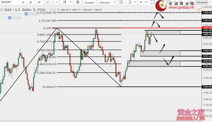 黃金技術分析: 現貨黃金周三(8月16日)亞盤和歐盤基本維持小幅的低位震蕩走勢。美盤受紀要偏鴿派影響再度走高,重回1280上方。上方關注1285-1292、前高1296美元/盎司,若繼續走高,突破前高之后則需要關注1307和1320美元/盎司兩線,下方關注1270.50-1267、1260-1251美元/盎司支撐區域。 黃金操作建議: 上方阻力:1285-1292、前高1296、1307、1320