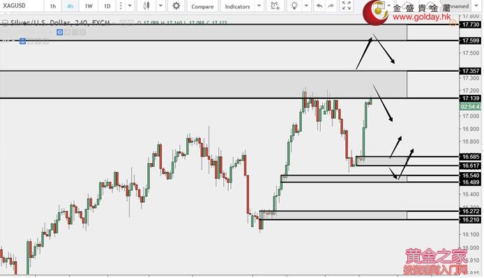 白銀技術分析: 現貨白銀周三(8月16日)亞盤和歐盤維持小幅低位震蕩格局,美盤再度開啟上行走勢。上方依然重點關注16.85-16.90和17.14-17.36區域,下方關注16.60-16.70、16.50、15.27-15.10美元/盎司支撐區域,早間可以關注前高16.74一線,若不破下行格局不變,若上破,有可能進一步反彈。 白銀操作建議: 上方阻力:16.85-16.90、17.14-17.36、17.60-17.73 下方支撐:16.60-16.70、16.50、15.90-16.03 今日重要數據: 19:30