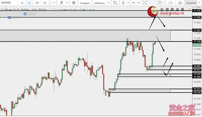 下方支撐:1270.50-1267、1260-1251 白銀技術分析: 現貨白銀周三(8月16日)亞盤和歐盤維持高位小幅真的格局,微微回落但是力度暫時不大。上方依然重點關注16.85-16.90和17.14-17.36區域,下方關注16.60-16.70、16.50、15.27-15.10美元/盎司支撐區域,早間可以關注前高16.74一線,若不破下行格局不變,若上破,有可能進一步反彈。 白銀操作建議: 上方阻力:16.85-16.90、17.14-17.36、17.60-17.73 下方支撐:16.60-16.70、16.50、15.90-16.03 今日重要數據: 19:30 德國 法蘭克福 歐洲央行公布7月貨幣政策會議紀要 20:30 美國至8月12日當周初請失業金人數(萬人) 20:30 美國8月費城聯儲制造業指數 21:15 美國7月工業產出月率 21:45 美國至8月13日當周彭博消費者信心指數 22:00 美國7月諮商會領先指標月率 22:30 美國至8月11日當周EIA天然氣庫存(億立方英尺)