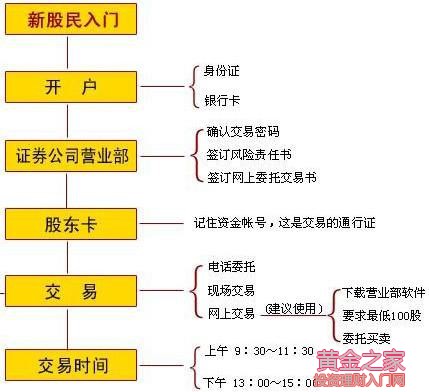 新手炒股的第一步驟,不是買(mǎi)股票,而是先開(kāi)戶。只有新手有了自己的炒股賬戶,才能正式進(jìn)入股市買(mǎi)股票,參與投資賺錢(qián)。 那新手要怎么開(kāi)戶呢? 先給大家說(shuō)說(shuō)開(kāi)戶流程哈,表著急,耐心看圖: 如果你沒(méi)看圖,請(qǐng)看以下流程: 1、帶上身份證、一定的資金額(一般都在100元左右,我們可以多帶一點(diǎn)以防萬(wàn)一)、銀行借記卡或者儲(chǔ)蓄卡; 2、在家附近找規(guī)模比較大,名聲比較好的證券公司,比如平安、中信證券、廣發(fā)證券啊什么的; 3、告訴相關(guān)的大堂負(fù)責(zé)人你要進(jìn)行開(kāi)戶的操作; 4、根據(jù)負(fù)責(zé)人的指令進(jìn)行操作; 5、完成相關(guān)操作后,會(huì)得到股東帳戶卡,他還會(huì)告訴你相關(guān)的網(wǎng)址讓你下載軟件; 6、回到家里進(jìn)行軟件的下載操作; 7、下載軟件完成之后,用他給你的帳號(hào)登錄,之后就可以開(kāi)始交易了。