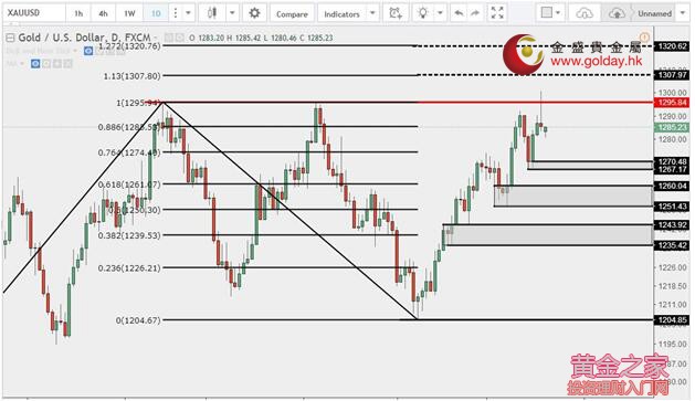 現貨黃金上周五(8月18日)亞市早盤開于1287.61美元/盎司,最低下探1283.24美元/盎司,最高上漲至1300.80美元/盎司,收于1284.20美元/盎司,下跌3.5美元,跌幅0.27%。 上周五美國總統特朗普罷免了其首席策略師兼高級顧問班農,該官員一直傾向于貿易保護主義;該消息降低了市場對特朗普貿易保護主義的擔憂,推升了市場的風險偏好,削弱了黃金的避險需求;金價沖高1300美元整數關口受阻,引發大量中線黃金多頭獲利了結和空頭反撲。 美國上周五公布的一份報告顯示,密西根大學8月美國消費者信心指數初值高于預期,為1月以來最高。數據顯示,密西根大學8月美國消費者信心指數初值為97.6,路透調查預估為94.0,7月終值為93.4。 Kitco上周五發布的每周黃金調查顯示,基于黃金本周的表現及上周的預測,華爾街專業人士及普通投資者繼續看漲下周黃金。在針對專業人士的調查中,有18人參與了調查,14人或78%認為下周黃金會上漲,2人或11%認為下周黃金會下跌,2人或11%預計將盤整。 沃爾什交易所商業對沖主管肖恩·洛斯(Sean Lusk)也看到黃金進一步的漲幅,考慮到股票市場調整以及地緣政治問題和美國政治局勢等因素。華盛頓最近的戲劇性變化給市場一個感覺,即特朗普總統的經濟議程將被放在后面。他說:“這個市場可能會有回調,但現在已經有很多資金在購買了。最近的回調并沒有持續很長時間......不確定性正在誘導很多的買盤。直到行情平靜下來,最低的阻力的路徑看起來也會更高。” 8月18日黃金ETFs數據顯示,截止8月17日黃金ETF-SPDR Gold Trust的黃金持倉量795.44噸,較上一交易日持平;Gold Trust 8月18日數據顯示,Gold Trust 8月17日黃金持有量213.28噸,較上一交易日持平。白銀持有量10401.24噸,較上一交易日減少44.09噸。 黃金技術分析: 現貨黃金上周五(8月18日)亞盤和歐盤小幅震蕩上行,再次嘗試沖擊前高,最終小幅突破,美盤再度上行,最高沖擊1300關口后回落。上方關注1300美元/盎司,若繼續走高,突破前高之后則需要關注外部擴展1.13和1.27的黃金分割位置1307和1320美元/盎司兩線,下方關注1270.50-1267、1260-1251美元/盎司支撐區域。畢竟突破前高了,因此不要輕易抄頂,就小周期而言,高點低點逐漸抬高,這個格局被改變才做空更為穩妥。 黃金操作建議: 上方阻力:1300、1307、1320