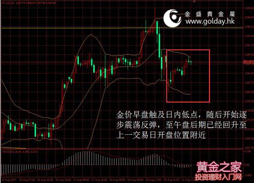 今日現(xiàn)貨黃金開盤1282.84美元/盎司,截至北京時間下午5點45分,最高價格為1288.99美元/盎司,最低價格為1280.41美元/盎司。日內(nèi)來看,金價早盤觸及日內(nèi)低點,隨后開始逐步震蕩反彈,至午盤后期已經(jīng)回升至上一交易日開盤位置附近。美元指數(shù)日內(nèi)小幅反彈走高,消息面仍然平靜,技術(shù)上看多空繼續(xù)博弈。 圖 1 金價日內(nèi)走勢 消息面上看,針對美國貿(mào)易代表上周宣布對中國啟動301調(diào)查,中國商務(wù)部表示,美國無視世貿(mào)組織規(guī)則,依據(jù)國內(nèi)法對華發(fā)起貿(mào)易調(diào)查,是不負責任的,對中國的指責是不客觀的;中方對美方這種單邊主義、保護主義的做法表示強烈不滿。其還表示,將密切關(guān)注事件進展,并將采取所有適當措施,堅決捍衛(wèi)中方合法權(quán)益。我們認為,一旦美國正式開始調(diào)查甚至開始采取貿(mào)易限制手段,中國將會予以反擊,雙方貿(mào)易戰(zhàn)已經(jīng)接近開始,這對全球經(jīng)濟并非利好,但對金價而言是一個利多因素。 此外,針對美韓的聯(lián)合軍事演習(xí),朝鮮方面尚未發(fā)出強硬表態(tài),市場對此擔憂并不大。但這仍是主要的地緣政治風(fēng)險之一,相關(guān)相關(guān)情況我們將會持續(xù)關(guān)注。 市場層面看,日本股市日內(nèi)走弱,刷新近四個月低位,技術(shù)上看下行趨勢明顯,日經(jīng)指數(shù)下跌0.4%至19393.13點。中國股市連續(xù)第三日收升,國企混改和周期股板塊帶動大盤震蕩盤升,但市場整體以存量資金運作為主,板塊輪動特點較明顯,上證指數(shù)上漲0.56%至3286.91點。香港股市收升,受中國聯(lián)通及能源股所拉抬,恒生指數(shù)收升0.4%至27154.68點。匯率方面,歐元跌勢加深,市場翹首以待杰克森霍爾會議,美元指數(shù)因此小幅反彈。國際能源價格下滑,受美國產(chǎn)出上升打壓,不過美國原油庫存自3月來下降13%,預(yù)示市場供給逐漸收緊,布倫特油價跌0.4%。 技術(shù)面上看,上周五金價沖高至1300美元后回落,顯示上方仍有較大壓力,但日內(nèi)金價的反彈也表明多頭尚未放棄,仍不排除再次上攻的可能性。短期來看,1300美元關(guān)口位置仍需要重點關(guān)注,一旦確認突破,上行空間將會打開,反之可能出現(xiàn)階段性回落,1260美元上方是最近的支撐位。中期來看,1220美元和1200美元整數(shù)關(guān)口仍是關(guān)鍵分水嶺,下一個壓力位可能在1337美元的高點附近。 投資有風(fēng)險,入市需謹慎。以上建議僅供參考,不作為唯一投資依據(jù)。