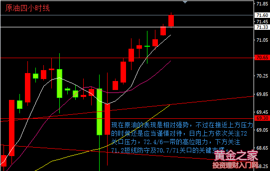 金銀同道:5.10原油,前路漫漫,伊核協議仍是焦點 行情回顧: 周三原油開盤后,先行以70關口為支撐平臺進行上探,而后白盤受阻于71關口上方,晚間美盤主要是在71.2-70.6之間進行震蕩,高點觸及71.27;此次EIA原油庫存數據利多影響,不過行情并未表現出明顯的反映,但包括白盤部分最終油價整體還是上升了1.3美金,日線最終收取小陽。 技術面: 日線昨日收取光頭光腳小陽線,單從K線形態而言,這是要繼續上揚的信號,收線最終收在了71.3一線,表現出了目前短線上多頭還是較強勢,日內可以將這一線作為短支撐去參考。從近日的日線連陽表現來看,油價是逐步上行的需求,不過上行節奏可能沒有想象中的那么順利,愈靠近上方壓力,受阻整理的情況愈多。從14年油價自73上方回落下來,當前還是首次去靠近高位阻力,現在原油的表現是相對強勢,不過在接近上方壓力的時候還是應當謹慎對待,通常這種大周期級別回測的行情,難以一次性去突破。技術指標來看,昨日一根陽線上穿布林上軌,當前位于71.2附近,MA5上移至70.4附近提供支撐,macd繼續金叉運行,整體表現偏多,四小時線及1小時線boll上軌開口,均線金叉并支撐價格上行,短線表現強勢,有上行需求。日內上方依次關注72關口壓力,72.4/6一帶的高位阻力,下方關注71.2短線防守,及70.7/71關口的關鍵支撐。 綜上所述: 當前原油屬于偏多發展,短線內是逐步上行的態勢,不過在面臨上方的壓力,還是要謹防回調或者陷入整理的走勢,操作上日內順勢做多為主,高位承壓放空為輔。另外,近期關于特朗普將采取對伊朗進行經濟制裁的消息,以及地緣政治風險的影響,都將對原油,貴金屬帶來不同程度的影響,可以留意這方面的消息。 日內布局: 、賮啔W盤71.2附近做多,止損70.8,止盈71.8附近。 、谌諆热羯咸街72.4/6附近做空,止損72.8,回看72/71.8附近。 、燮渌磿r性行情屆時在根據行情布局。 【今日重點關注的財經數據與事件】2018年5月10日 周四 、 16:30 英國3月工業產出月率、英國3月制造業產出月率、英國3月季調后商品貿易帳 、 17:15 歐洲央行行長德拉基和執委科爾出席Charlemagne Prize 2018頒獎典禮 、 19:00 英國央行公布利率決議、會議紀要及通脹報告 、 20:30 美國至5月5日當周初請失業金人數、美國4月季調后CPI月率 ⑤ 22:30 美國至5月4日當周EIA天然氣庫存 文/金銀同道 |