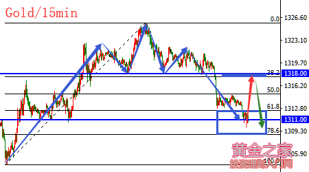 本周一,國際黃金價格在亞歐市盤中震蕩波動始終維持在4個點左右,由于行情的爆發來得很慢很晚,在美市開盤初期從1318小支撐開始微幅上漲令筆者一度以為跌勢將要結束,可以說窄幅震蕩相比于普通震蕩行情會令人更加焦躁,因為突破上下區間邊界就在爆發的那么一瞬間。黃金價格于夜間美市尾盤時段開始發力向下突破1318小支撐,最低下探至1313一線企穩但無反彈跡象收盤。 全球最大黃金ETF--SPDR Gold Trust 持倉繼續減少1.47噸,自5月1日至今已連續六次減倉持有,這在一定程度暗示市場現在對于黃金價格的態度,自行領悟。今日白盤,黃金價格進一步走低至現低點1311一線,昨日1322堅持看空的觀點在正確的思路加上耐心的等待下也終于可以完美收場。筆者楊珞謙在昨日文章中提到的是日內看先跌后漲,可惜由于行情來得太晚,我們看到的僅僅是先橫盤后下跌,那么今日的可以延續昨日跌后上漲的思路,但由于時間的問題不宜看得過長。 黃金價格正如昨日筆者把看漲入場空間低點放在1326-1304斐波那契0.786回調位1309一線所預測的那樣,在1311-09這個位置受到較為強勁的買盤力度,也是我們日內看短多的入場區域。而1小時線成功構筑頭肩頂形態,1318作為其頸線將會是本次反彈的強阻力之一,短線上的支撐位置其實已經十分明確了,1302-05為千三關口最后一道的防線,而1310至1318為短期震蕩空間,再上方的阻力則需要根據時間進行小幅修正。黃金操作回踩1310多,反彈1318空,損3-4盈6-8。 |