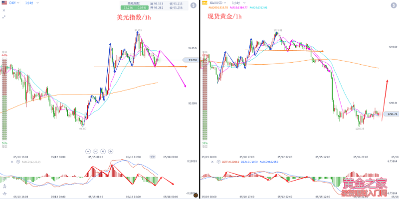上一個(gè)交易日美市盤(pán)中,不斷有數(shù)據(jù)及美國(guó)官員講話等消息公布,包括美國(guó)總統(tǒng)特朗普、美聯(lián)儲(chǔ)布拉德及威廉姆斯等重要人物在內(nèi)的言辭,均沒(méi)有對(duì)黃金價(jià)格造成可觀影響。黃金價(jià)格并未受到消息面刺激而波動(dòng)得更為劇烈,那么整體而言還是處于技術(shù)面主導(dǎo)的行情之中,這樣筆者對(duì)于行情的把握準(zhǔn)確性無(wú)疑會(huì)更大幾分,昨日1296的空和1286的多就是最明顯的例子。消息面能帶來(lái)更大的行情但穩(wěn)定性不佳,相比而言技術(shù)面上的分析會(huì)穩(wěn)定很多。 昨日美元指數(shù)和黃金價(jià)格的日線雙雙收十字線,前者創(chuàng)新高而后者創(chuàng)新低,那么十字線的意義只有在今日收線后才能體現(xiàn)出來(lái)。昨日晚間,筆者楊珞謙在中金博客發(fā)表了一張有樂(lè)趣的圖,即美元指數(shù)從5月14日美市開(kāi)盤(pán)后的小時(shí)走勢(shì)保持和黃金價(jià)格5月9日歐市開(kāi)盤(pán)后的走勢(shì)一致,至今依然如此。漲到哪個(gè)相對(duì)位置適合拋盤(pán),或者跌到哪個(gè)相對(duì)位置適合接手的相似性,都說(shuō)明市場(chǎng)情緒的變化是有一定規(guī)律可循的。目前美元指數(shù)已經(jīng)完成了黃金價(jià)格5月12日前1小時(shí)線的左肩和頭部形態(tài),能否繼續(xù)維持一致性形成右肩呢?我們拭目以待。 昨日黃金價(jià)格于底部震蕩一日,短線沒(méi)有過(guò)多需要分析的,而跌破千三關(guān)口支撐回踩1366-1236斐波那契0.618回調(diào)位并不一定就代表著全面轉(zhuǎn)跌。這也是為何筆者昨日說(shuō)“就看多方能否堅(jiān)持穩(wěn)守下方某個(gè)支撐進(jìn)而不影響大趨勢(shì)的走向”,個(gè)人認(rèn)為下方1265一線才是多空大勢(shì)分水嶺,在此上方都屬于多頭大趨勢(shì)的回調(diào)。大勢(shì)歸大勢(shì),但短線也有短線的方向,4小時(shí)反彈需求很明顯,結(jié)合前文分析,日內(nèi)可以先看小跌再看4小時(shí)反彈,暫時(shí)只建議回踩1288一線多,止損4個(gè)點(diǎn),目標(biāo)上看1302-04,破位持有看1308-11。 |
