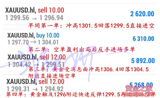 昨日黃金收盤于1296,今日早間開盤先漲至1301附近開始下跌,早間我們先布局空單進(jìn)場(chǎng),1299附近進(jìn)場(chǎng)空單在1296附近獲利平倉,下方支撐在1295一線,試探未破反手多單進(jìn)場(chǎng)。1297附近進(jìn)場(chǎng)多單,順勢(shì)止盈1304。沖高1306.4回落1304.5附近進(jìn)場(chǎng)空單,止盈1298。而后反彈1299.5再次進(jìn)場(chǎng)空單,止盈1294,踏準(zhǔn)節(jié)奏的感覺就是如有神助。很多做投資的客戶一路走來并不是一帆風(fēng)順的,有些虧損嚴(yán)重的客戶在操作方面有很深的陰影,怕做單,怕操作,覺得自己一多就跌,一空就漲,完全責(zé)怪于運(yùn)氣,其實(shí)真不是這樣的,歸根結(jié)底在于自己的技術(shù)不過關(guān),操作之時(shí)只是憑感覺單的,感覺怎么會(huì)一直準(zhǔn)確呢?行情有尺,心中有度,把握行情尺度;心靜則尺平,心明則尺準(zhǔn)。心靜指的是心態(tài),心明指的是專業(yè),經(jīng)過嚴(yán)謹(jǐn)?shù)姆治鲩_倉有把握,做到胸有成竹何愁平倉沒有利潤呢?