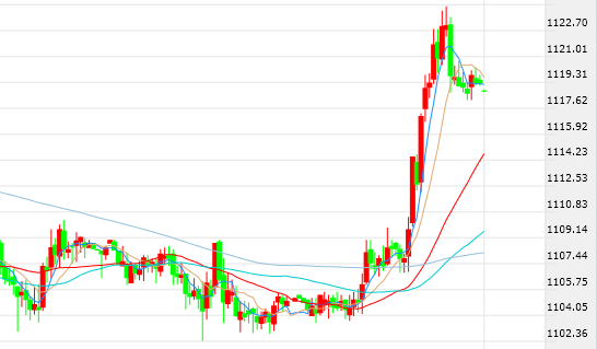 北京時間06:11,現貨黃金報價1118.7美元/盎司。 |