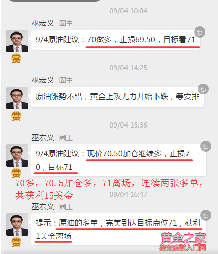 生活中,有些事你想不開的時候,換個角度,才會感覺生活的美好。交易也是如此,沉寂在交易中,總想問自己為什么沒有做好,樹開花多,并不一定結果多,而成熟的那一刻,要冒著壓斷樹枝的風險,想要做的更好,需要跳出來,看淡了,才是真正的果。不要給交易太多的壓力,壓力越大的時候,交易的結果越差。這就是為什么該觀望的時候,一定不要出手,休息,就是為了更好的做好未來。 早間的黃金就是這樣,盤面上日線連續收十字星,均線聚集在1200附近,這是震蕩行情的典型表現,無趨勢狀態,支撐點1195、壓力點1203、1208,價格所處的位置可上可下,且上下空間的利潤有限,觀望,也就成了最好的選擇。 而原油則不然,日線持續的高位橫盤之后,直接向上突破并加速上漲,也就成了大概率事情。該出手時就需大膽出手,早間安排的70直接多,70.5加倉多,完美到達目標點位71,連續兩張多單共獲利15美金。 黃金,大方向上我們依然保持一個筑底的思路來對待,1160大概率就是短期的低點位置,在價格沖高1214的回踩就是一個底部確認的過程。正如周一《巫宏義:9月3日黃金多頭欲開啟翻身大業,中線布局正當時》文中提到的,趨勢不是輕易能夠反轉的,底部也不是一蹴而就,通常會反復震蕩,多空轉換,筑底時間越充分,上漲越有力度。周初價格有所回撤是正常的,莫慌莫急,充分的回撤是為了后市更好的上漲。 晚間,黃金在亞盤時段持續的上攻無力,快速回落,跌破了昨日低點1195。短期內空頭得到進一步確立,有進一步調整以尋求支撐的需求。亞盤下跌,歐盤續跌并破底,目前價格低位橫盤。這里分為兩種情況,若6--8點加速下跌,空頭力量得到釋放,則晚間看探底回升走震蕩;若6--8走反彈,則晚間美盤還有一跌,上方分水嶺1202/1203,可依托此位置,在1198空一次。 9月4日美盤黃金原油操作建議: 黃金:6--8點加速下跌,則在1190附近多一次,止損1186,目標1196--1198;6--8點反彈,則在1198空一次,止損1203,目標1193--1190 原油:回撤70.50多,止損70,目標看71.50 另外,行情波動節奏慢,反復性強,操作上不要試圖抓住所有波幅,把握和跟隨自己看得懂、確定的行情,保質不保量。 歡迎朋友們關注收藏轉發! 文/巫宏義 2018.9.4 |