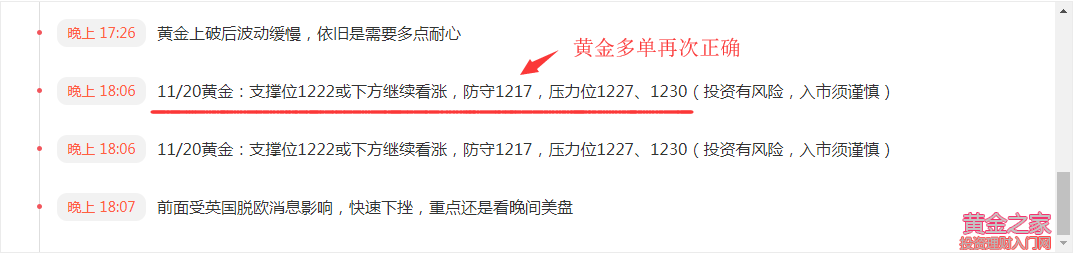 有時(shí)候不是等不到結(jié)果,而是沒有勇氣去追求,漸漸的,越在乎了越怕遇見,也許在這個(gè)市場顯得有些懦弱,可又何嘗不是怕因沒行情而寂寞,怕沒抓住而悔恨。人們或許一直抱怨這個(gè)地方,就是自己沒有勇氣走出的圈子。不要試圖傾訴,所有一切必須獨(dú)自承擔(dān),沒有人會真正分享你的喜怒,必須學(xué)會微笑,然后假裝疼痛不在,投資者的理想很像發(fā)型,換了這樣,又換那樣,患得患失,不知所謂,而依舊還在一路向前! 黃金,今日的走勢與昨日類似,波動不大,但都反復(fù)的比較厲害。亞盤回調(diào)觸及博文中提到的1221進(jìn)場點(diǎn)位,午后開始走強(qiáng),歐盤開盤后,延續(xù)上漲,直接破位了1225附近壓力。但僅僅是小幅刺破了一下,并沒有延續(xù)走強(qiáng),后受英國脫歐再次波瀾消息的影響,快速下跌,抹平午后全部漲幅,當(dāng)前已再次上漲并創(chuàng)出日內(nèi)新高。 單陰回撤并未改變趨勢,行情還是維持上漲走勢,是以震蕩向上的方式運(yùn)行,并不是強(qiáng)勢單邊上漲。亞盤回撤后上漲,歐盤震蕩,雖有破高但并未延續(xù),加上美國臨近感恩節(jié),市場觀望氛圍較濃,晚間美盤料將繼續(xù)維持震蕩上漲,漲幅并不會太大。整體思路,在1221上方繼續(xù)看漲,看向1230附近;若下破,則短線下行風(fēng)險(xiǎn)增加,可能會進(jìn)一步試探1218支撐。 11月20日美盤黃金建議: 1223附近做多,防守1218,目標(biāo)1230 操作建議僅供參考,后續(xù)有可能根據(jù)行情進(jìn)行實(shí)時(shí)調(diào)整,需要跟進(jìn)的請加入巫宏義團(tuán)隊(duì)。 文/巫宏義 |
