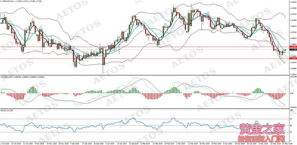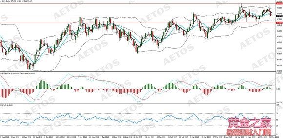 耐用品訂單數據走軟,美指持續回落(DXY) 技術面:美元上一交易日震幅達37個點,收跌0.27%。日線BOLL(20)布林中軌趨于下行,匯價貼近布林下軌;日線MA5,10雙線趨黏合,MA5趨于下行,匯價承壓于MA5下方;日線MACD(12,26,9)DIFF線下穿DEA構死叉,陽柱翻陰;日線RSI(14)于48-49一線運行,運行斜率較小趨于走平。上方阻力98.50,下方支撐97.00。 基本面:美國4月耐用品訂單月率錄得-2.1%,顯著遜于前值2.6%;美國4月扣除飛機非國防資本耐用品訂單月率錄得-0.9%,遜于預期-0.3%及前值1.4%。有評論稱,美國耐用品新訂單月率降幅大于預期,進一步表明在第一季度經濟增長后,制造業和海外經濟增速均有所放緩。據CME“美聯儲觀察”:美聯儲今年6月維持利率在2.25%-2.5%的概率為95%,降息25個基點的概率為5%。 歐盟大選落下帷幕,歐元低位頑強走高(EUR/USD) 技術面:歐元上一交易日震幅達35個點,收漲0.19%。日線BOLL(20)布林中軌趨于上行,匯價貼近布林上軌;日線MA5,10構金叉,MA5趨于走高,匯價運行于MA5上方;日線MACD(12,26,9)DIFF線上穿DEA構金叉,陰柱翻陽;日線RSI(14)于53-54一線運行,運行斜率較小趨于走高。上方阻力1.1245,下方支撐1.1135。 基本面:歐盟大選落下帷幕,據歐盟官方預計,初步結果顯示民粹主義政黨在整體投票中贏得了29%的選票,略低于當前議會30%的得票率。若最終投票結果符合初步預計,這意味著歐盟當前的政策傾向不太可能因大選而逆轉。據Morningstar Inc的數據,上個月,對沖基金在歐洲共同基金和交易所交易基金市場中的資金出現凈流出,為連續第八個月的凈流出;報告指出,基金資產的下降是由于歐洲資金外流及業績不佳造成的。 梅姨正式辭去相位,英鎊低位企穩反彈(GBP/USD) 技術面:英鎊上一交易日震幅達85個點,收漲0.39%。日線BOLL(20)趨于收口,布林中軌趨于下行,匯價持續承壓于中軌下方;日線MA5,10,20構多周期死叉共振,MA5趨于走高,匯價運行于MA5上方;日線MACD(12,26,9)陰柱勢能較小,勢能較前一交易日縮減;日線RSI(14)于35一線運行,運行斜率較大趨于走高。上方阻力1.2770,下方支撐1.2605。 基本面:當地時間24日,英國首相特蕾莎·梅在與“1922委員會”主席布雷迪會面后宣布,將于6月7日辭去黨首職位,并于6月10日開始的一周開啟保守黨領導權爭奪戰。英國前外交大臣、原倫敦市長、強硬脫歐派代表人士鮑里斯·約翰遜5月16日確認參加保守黨黨魁選舉。西班牙政府發言人:西班牙政府已經準備好英國強硬脫歐;強硬脫歐似乎是不可避免的。周一,因英國春季銀行假日,英國金融市場休市一日。 風險聲明 以上內容屬于一般性信息,并未有將您的投資目標、財務狀況和投資需求考慮在內。AETOS艾拓思資本集團是所有產品的發行商(AFSL:313016,ACN:125113117)。交易外匯保證金和差價合約產品涉及高風險,損失可能會超過閣下的初始投資。本公司強烈建議閣下在作出投資決定前尋求獨立財務顧問建議。更多細節請登錄AETOS艾拓思官方網站獲取及參閱本公司的《產品披露聲明》。