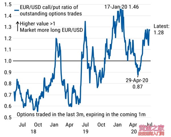 附圖:EUR/USD 看漲/看跌期權(quán)比率重回6月高位