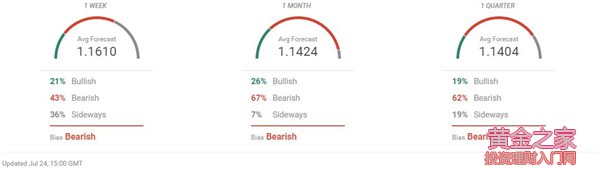 FXsteeet.com: (1)歐元兌美元EUR/USD一周預期中值為1.1610;一個月預期中值為1.1424;三個月預期中值為1.1404 (2)綜合市場觀點,受訪者預測歐元兌美元EUR/USD在未來一周至三個月內持續回落至1.14位置
