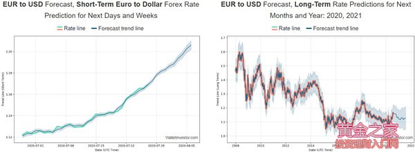 Walletinvestor.com: (1)預計本周(7月27日-7月31日)歐元兌美元EUR/USD將走高至1.19上方 (2)長期智能技術分析模型評估:歐元兌美元EUR/USD將在中長期時間級別持續偏弱運行至1.15下方