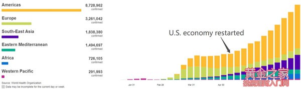 附圖:全球主要地區單周新冠肺炎確診病例數 來源:WHO