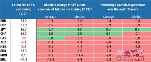 (3) GBP倉位降至小規(guī)模空倉。得益于USD看跌情緒的升溫和GBP兌USD空頭回補(bǔ)現(xiàn)象的影響,GBP的情緒指標(biāo)迅速改善,從幾乎最被交易員看空(僅稍好于USD)的貨幣,成為最近兩周最被看漲的貨幣之一。但需注意,GBP空倉回補(bǔ)推動的漲勢可能正接近其終點 附圖:G10貨幣情緒指標(biāo) 來源:trade-futures.com