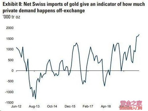 附圖:瑞士黃金凈進口量 來源:WGC, Goldman Sachs
