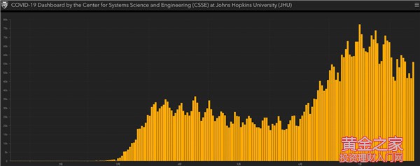 附圖:美國新冠疫情單日新增病例數 來源:Johns Hopkins University